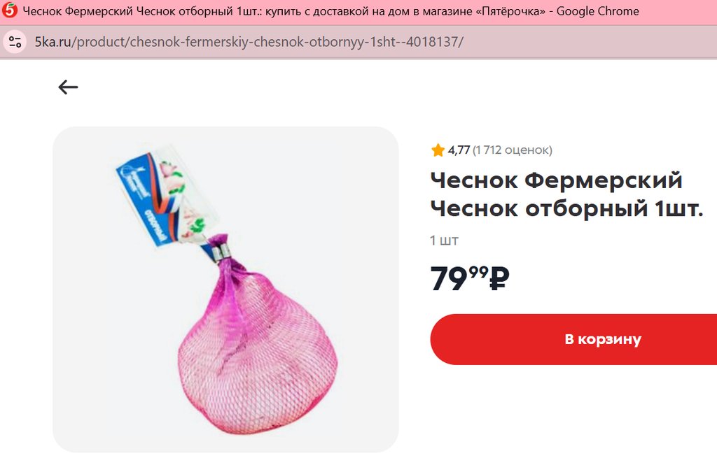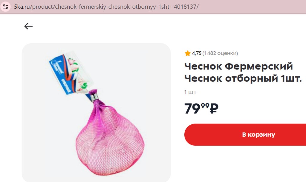 Чеснок Фермерский Чеснок отборный 1шт упаковка