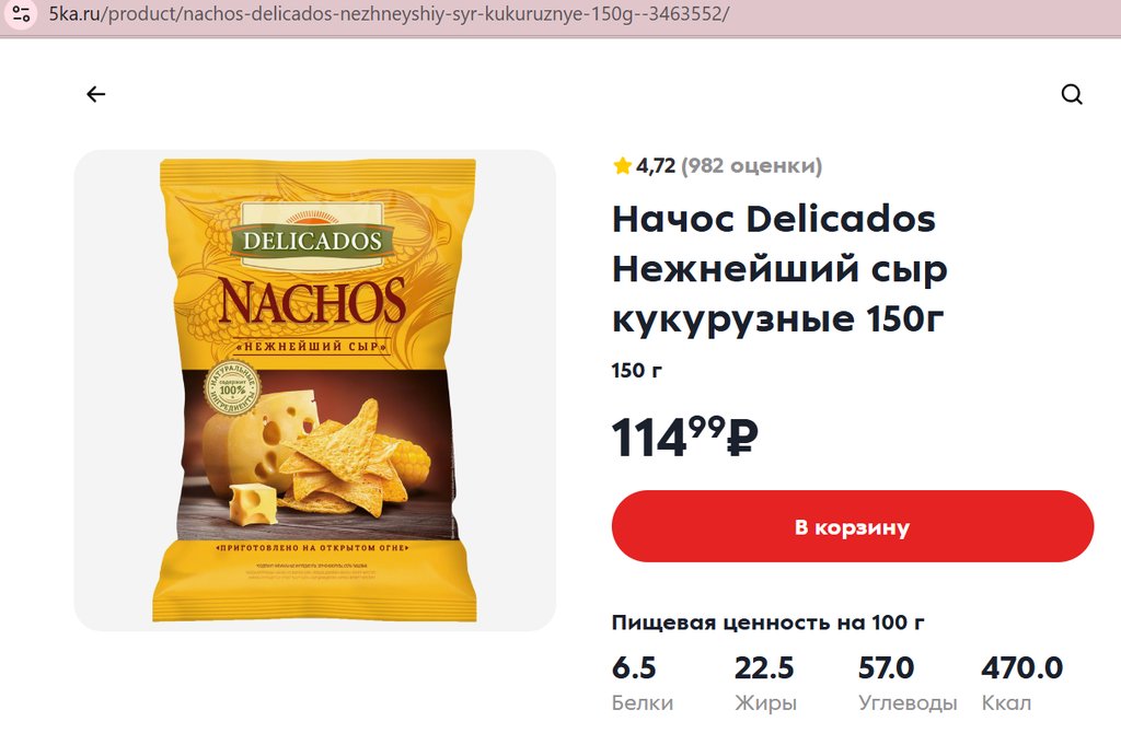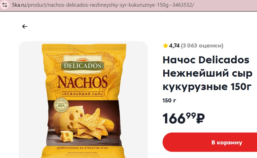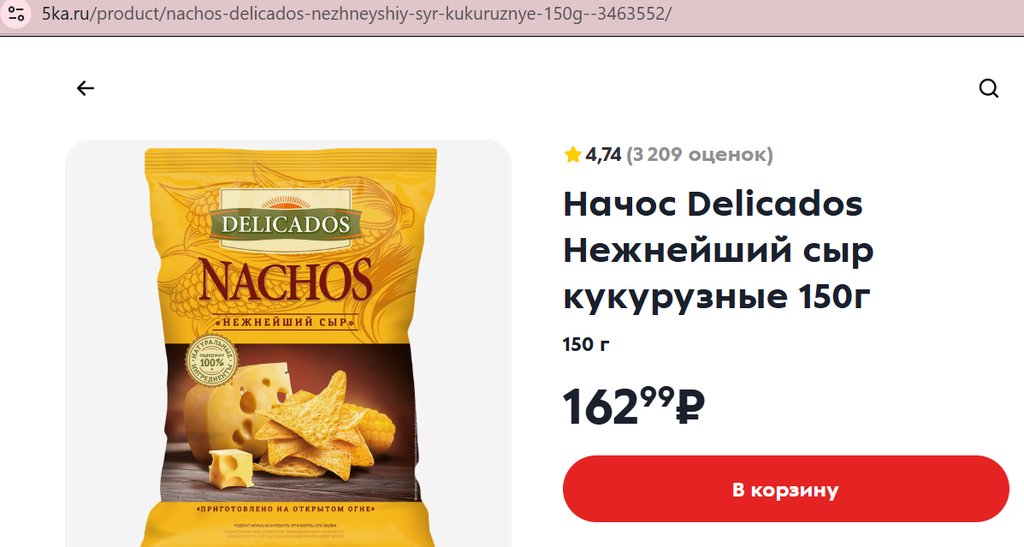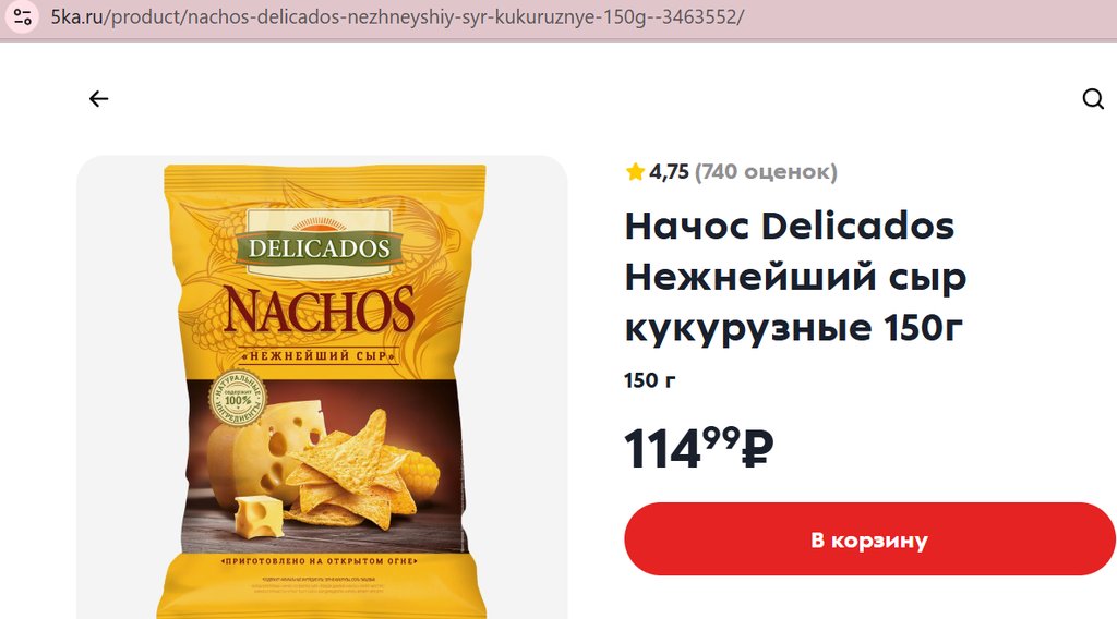 Чипсы Delicados NACHOS (Начос) Нежнейший сыр 150г
