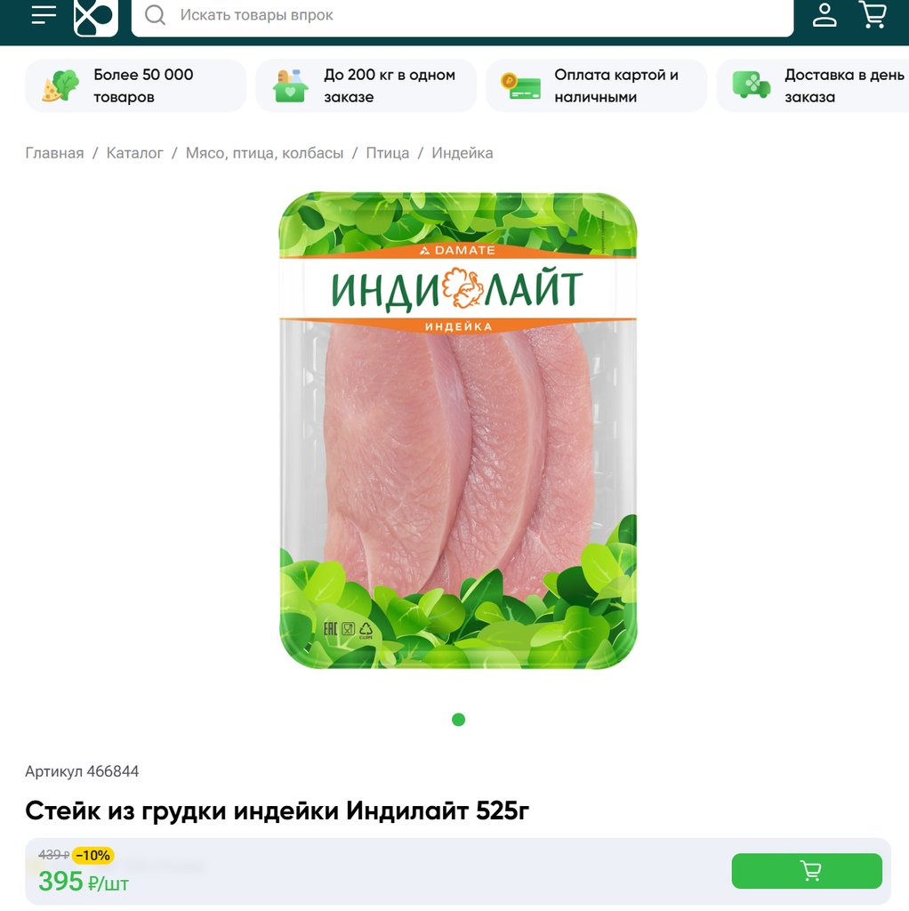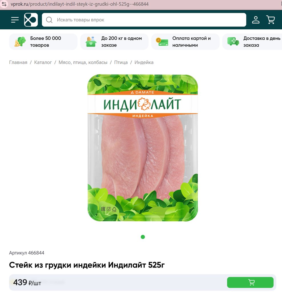 Стейк из грудки индейки Индилайт 525г