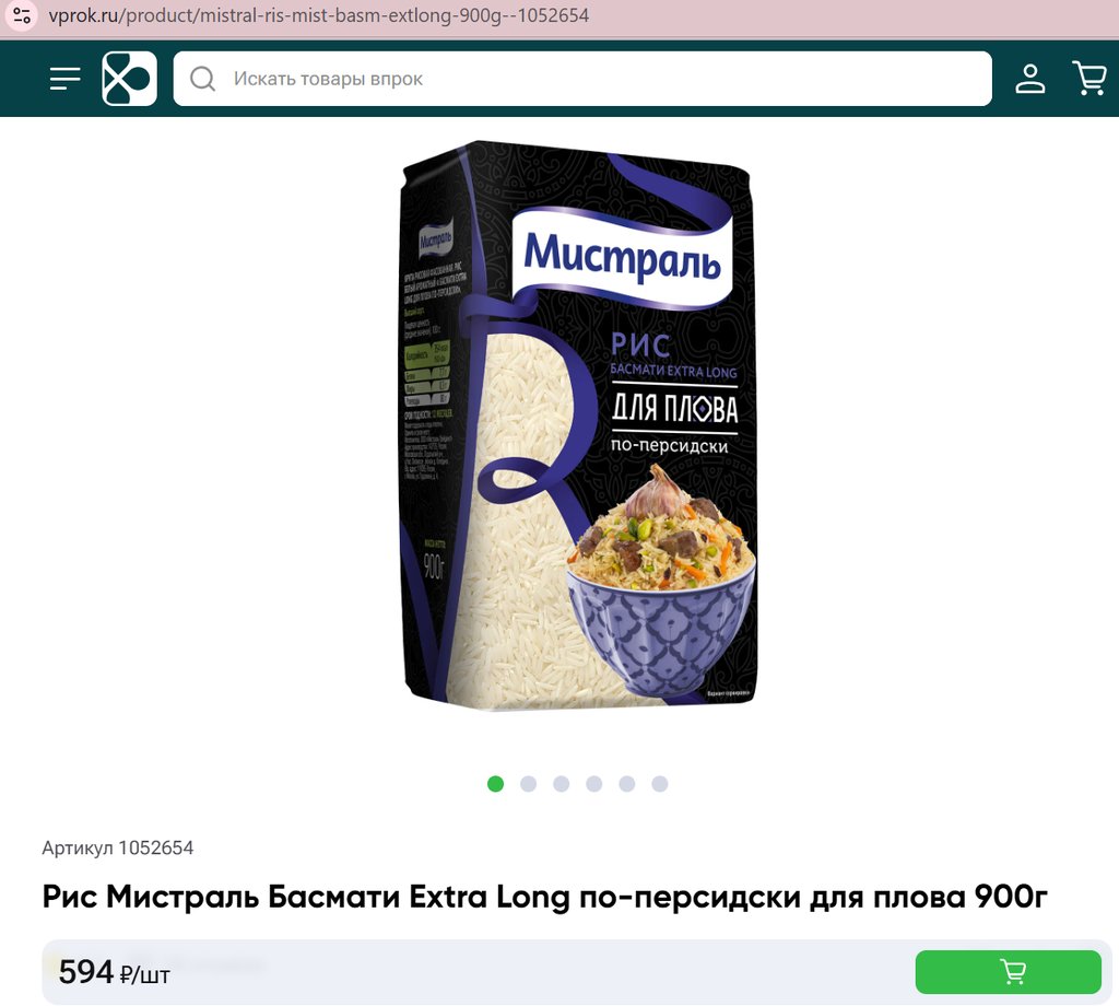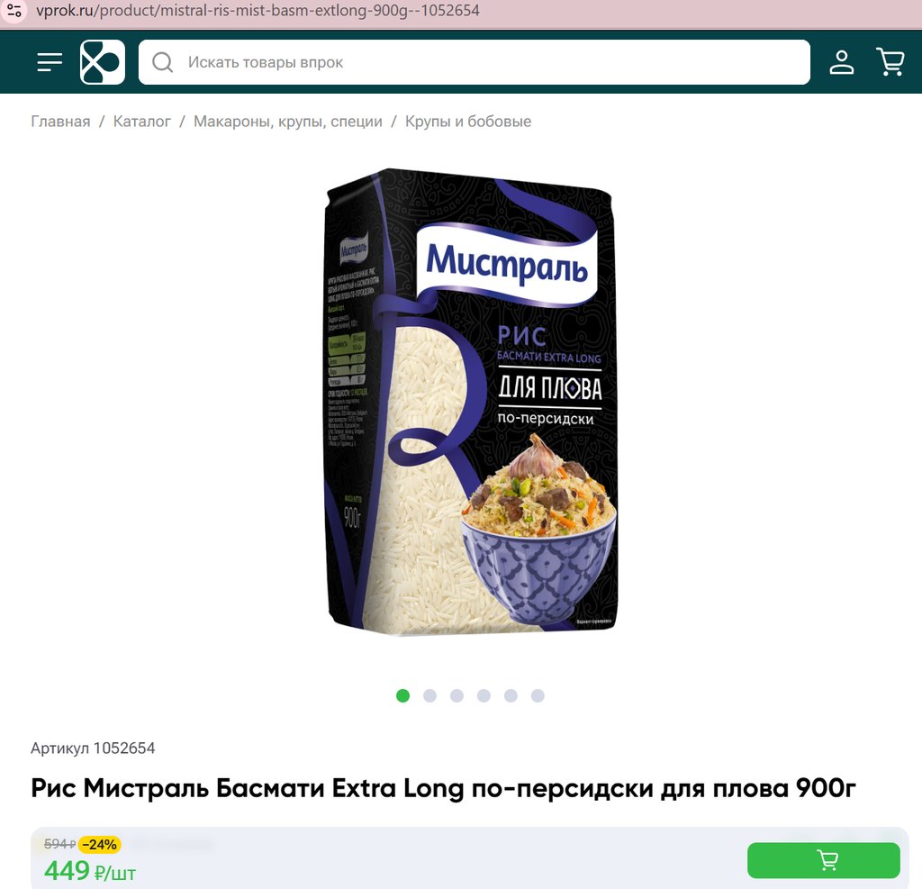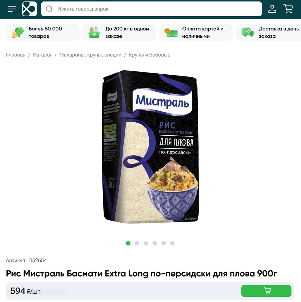 Рис Мистраль Басмати Extra Long по-персидски для плова 900г