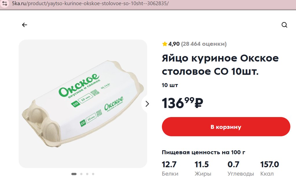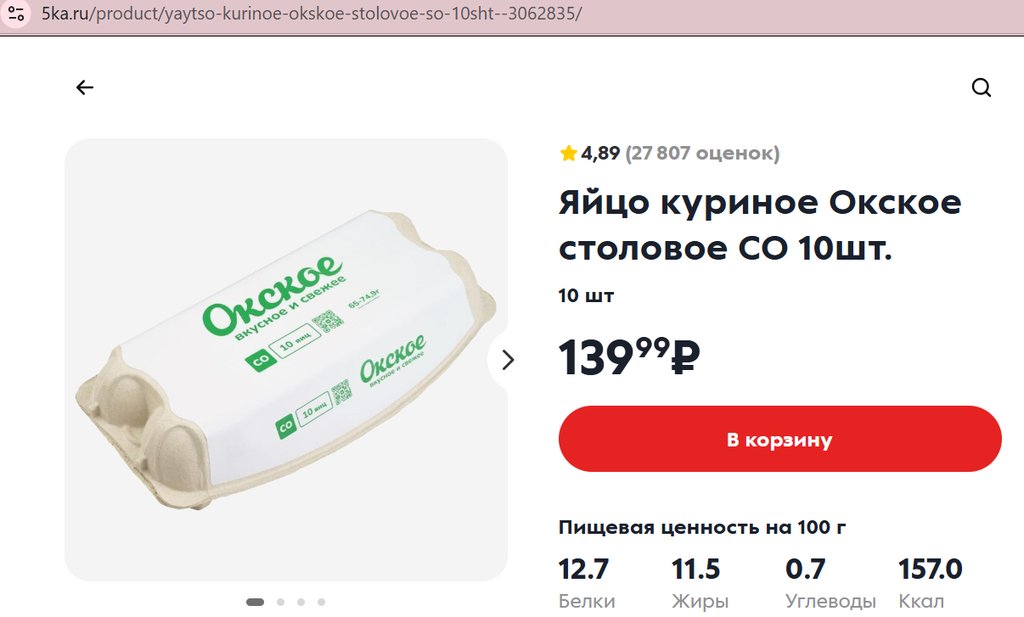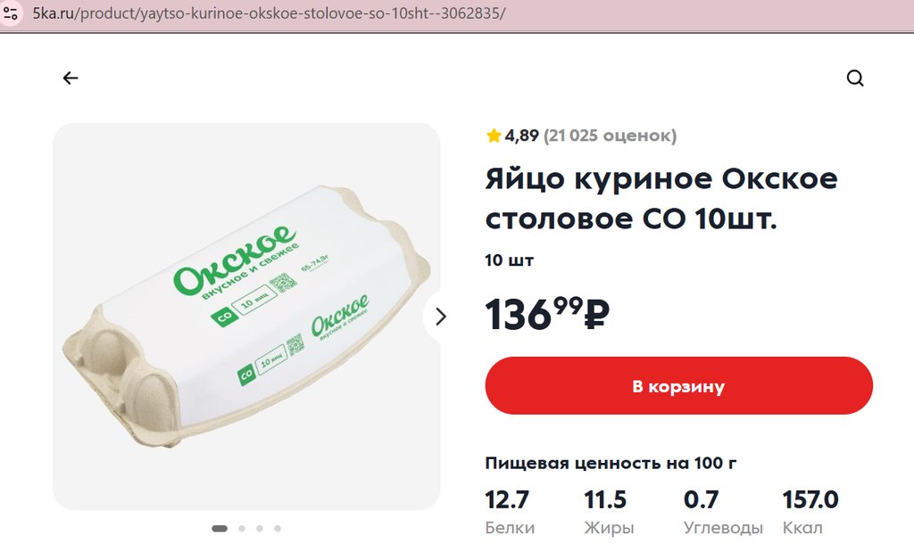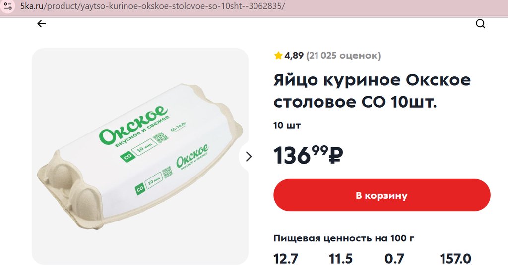 Яйца Окское СО белые 10шт