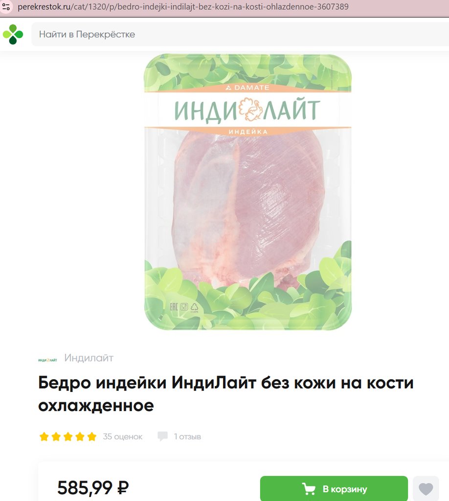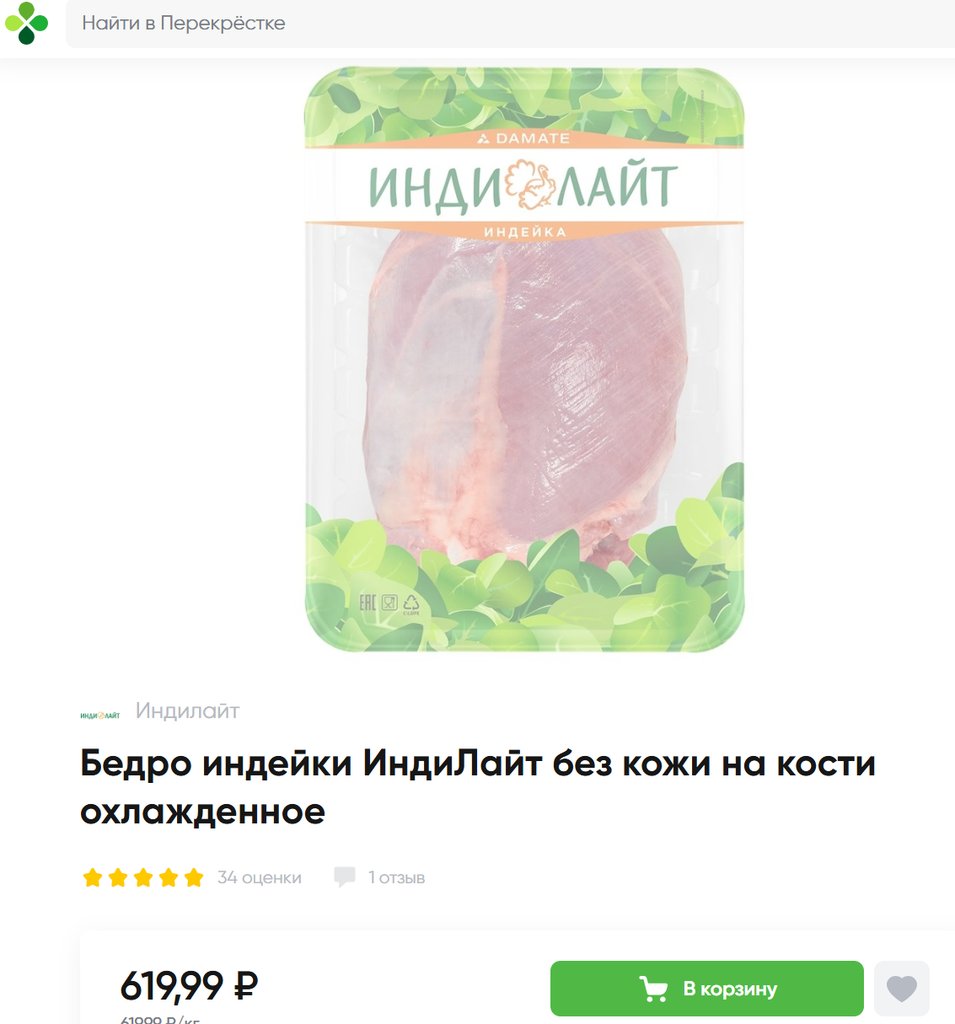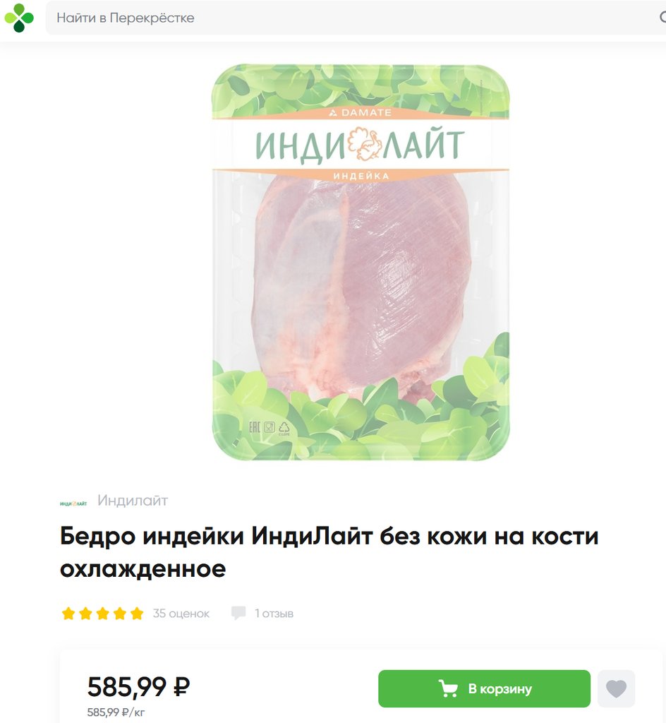 Бедро индейки Индилайт на кости без кожи 1кг.