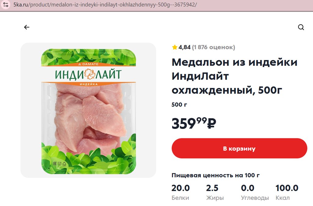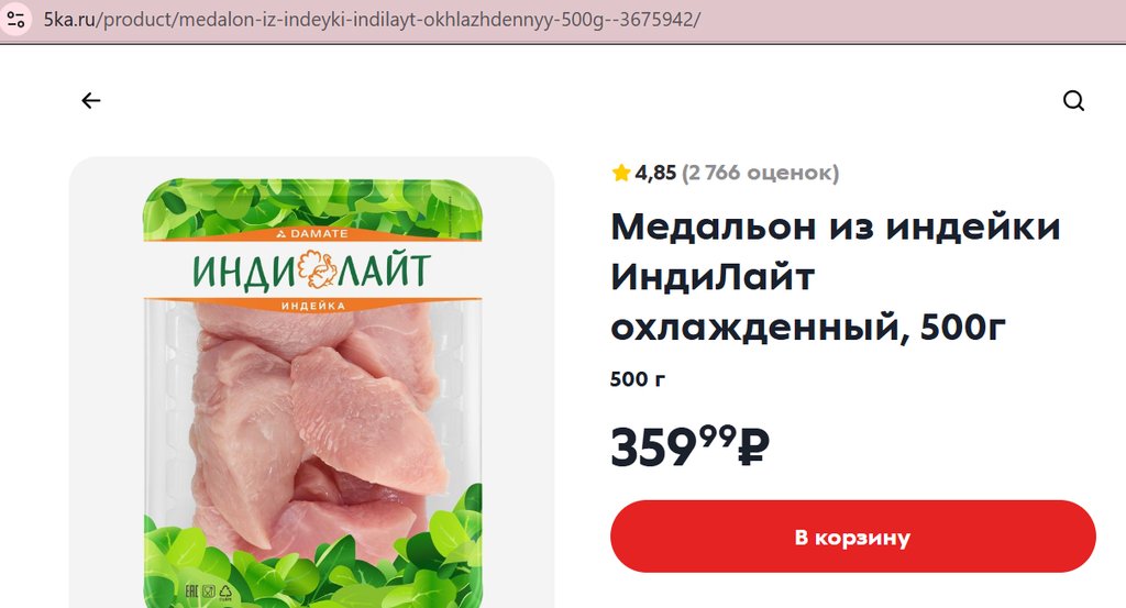 Медальон из индейки Индилайт 500г