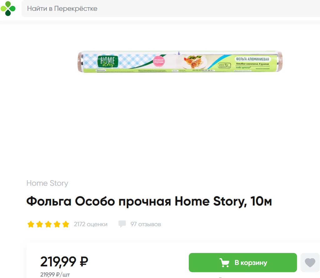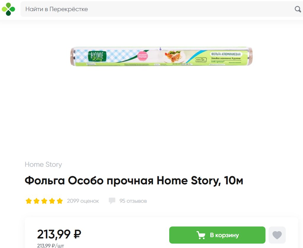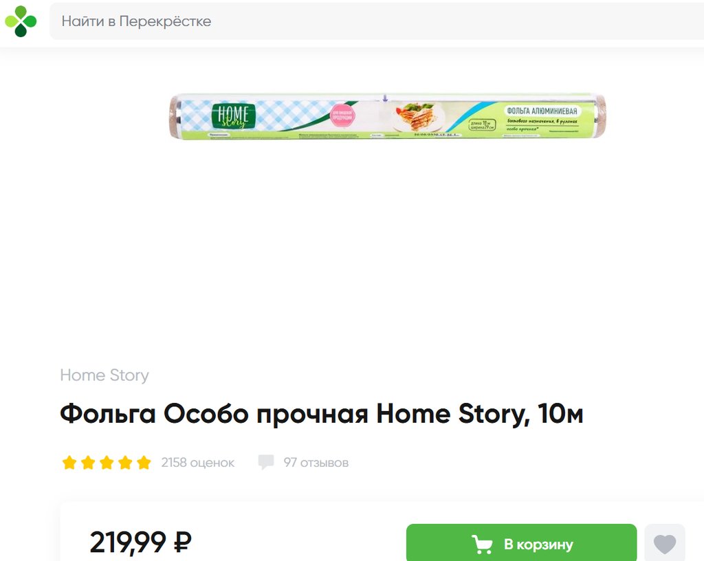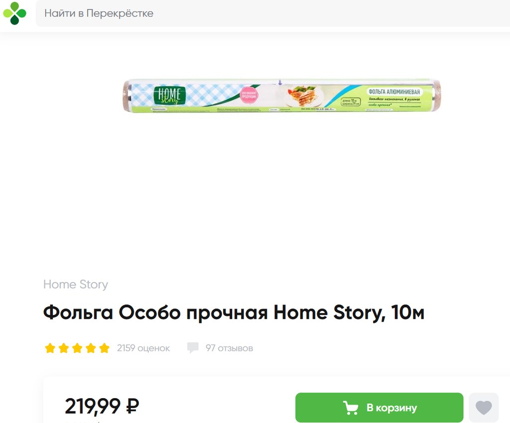 Фольга алюминиевая Home Story особо прочная 29см 10м
