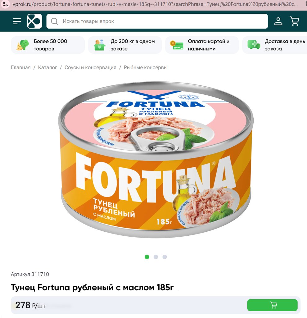 Тунец Fortuna рубленый с маслом 185г