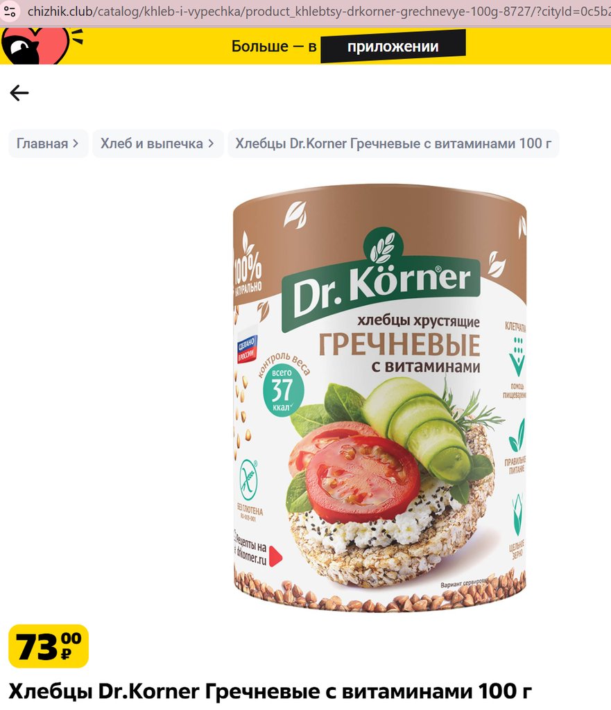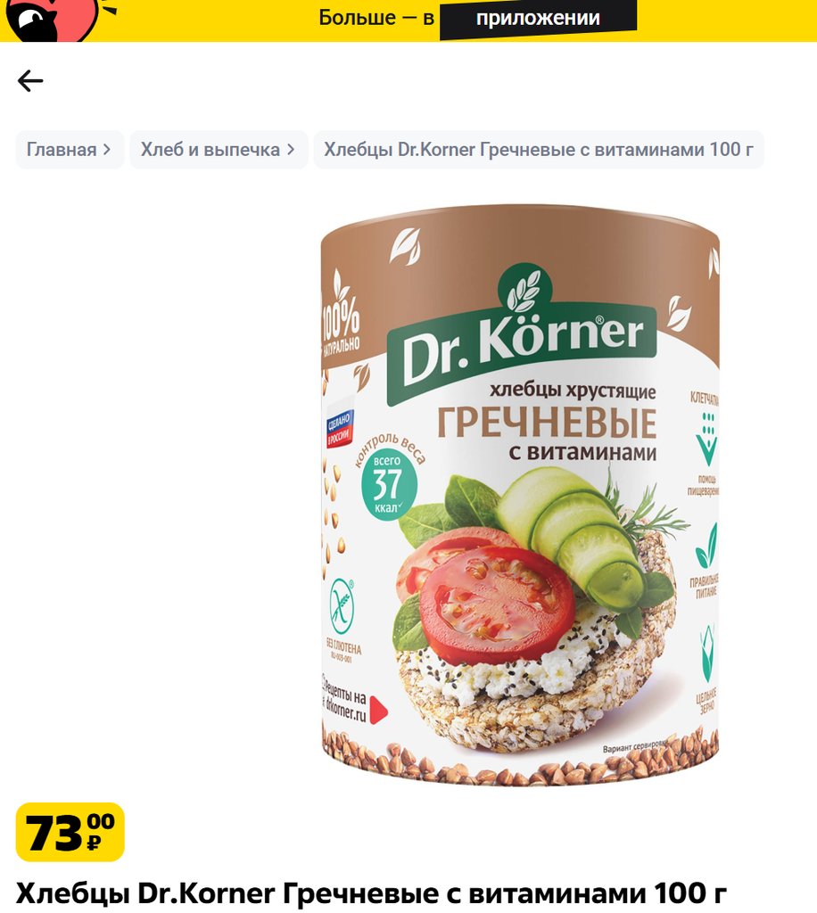 Хлебцы Dr.Korner Гречневые с витаминами