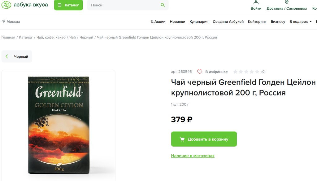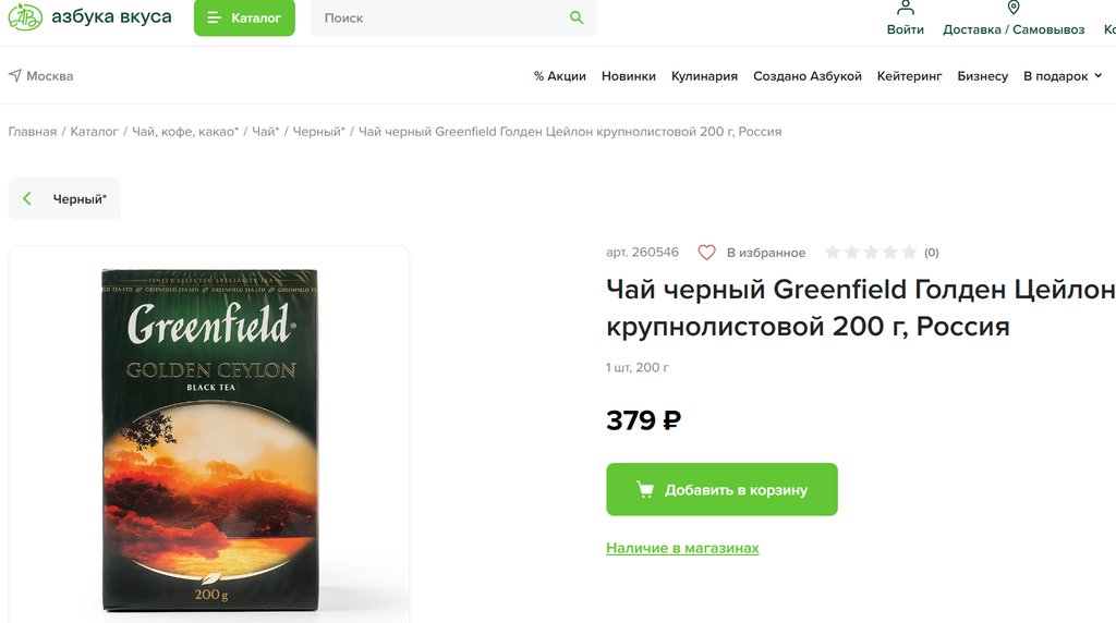 Чай черный Greenfield Golden Ceylon крупнолистовой 200 г