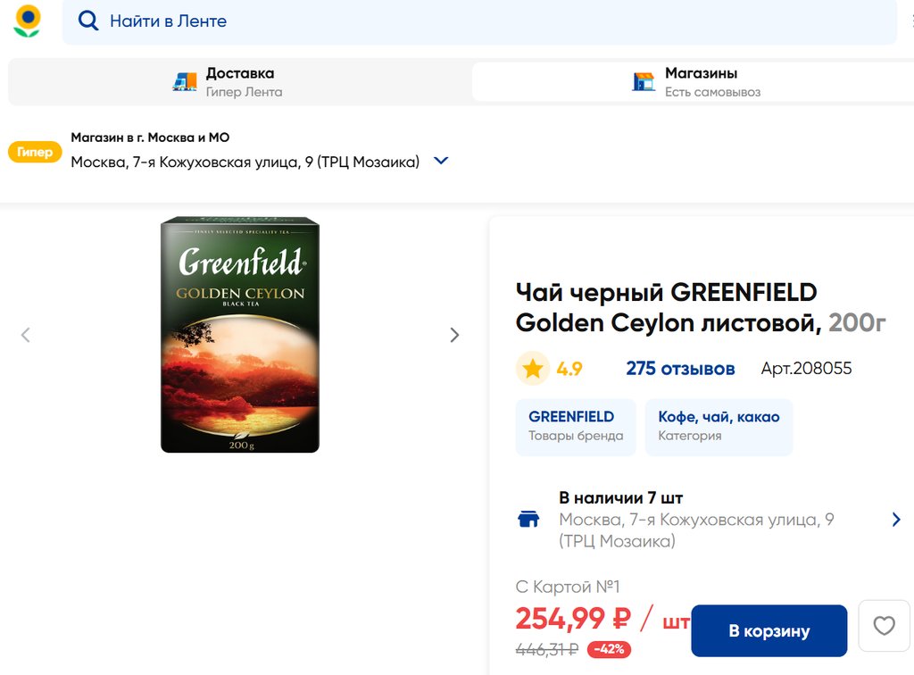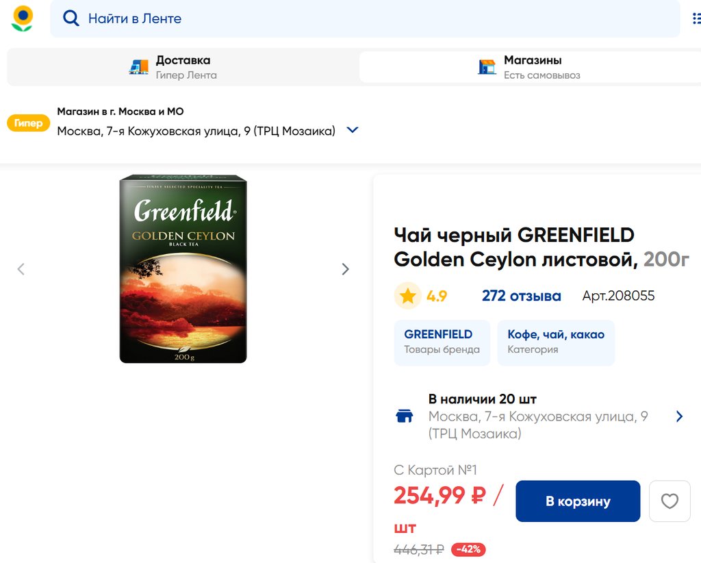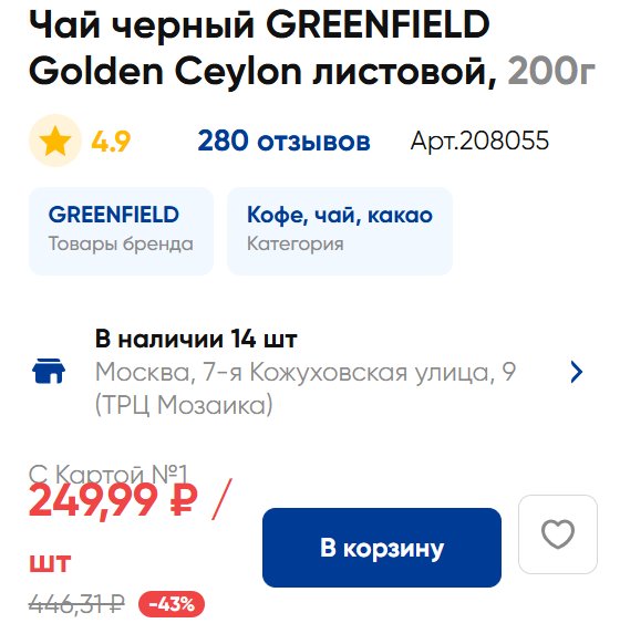 Чай черный Greenfield Golden Ceylon крупнолистовой 200 г