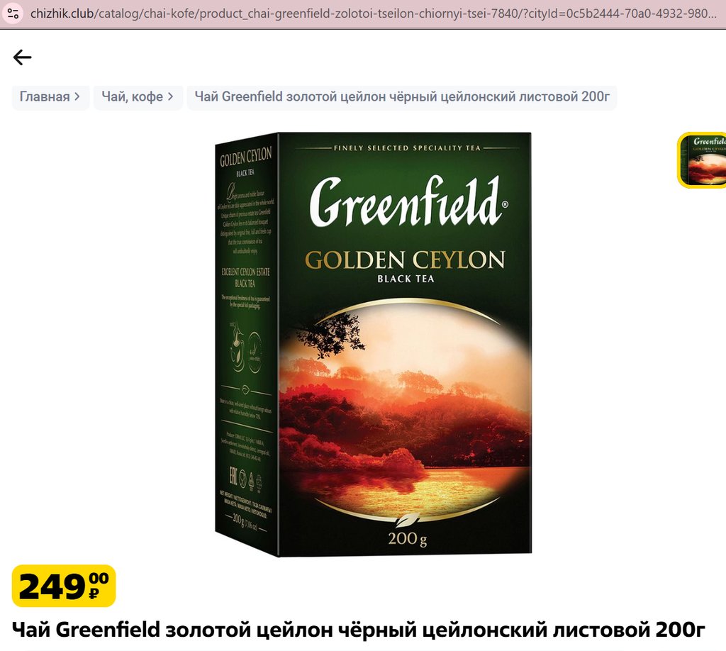 Чай черный Greenfield Golden Ceylon крупнолистовой 200 г