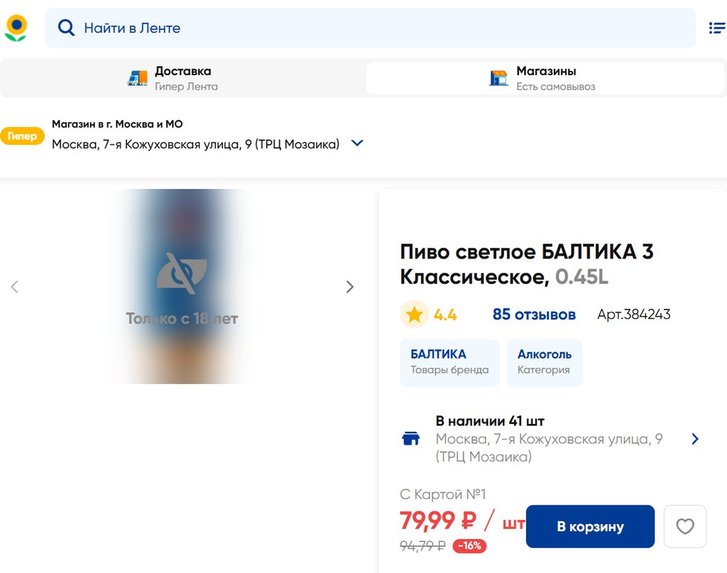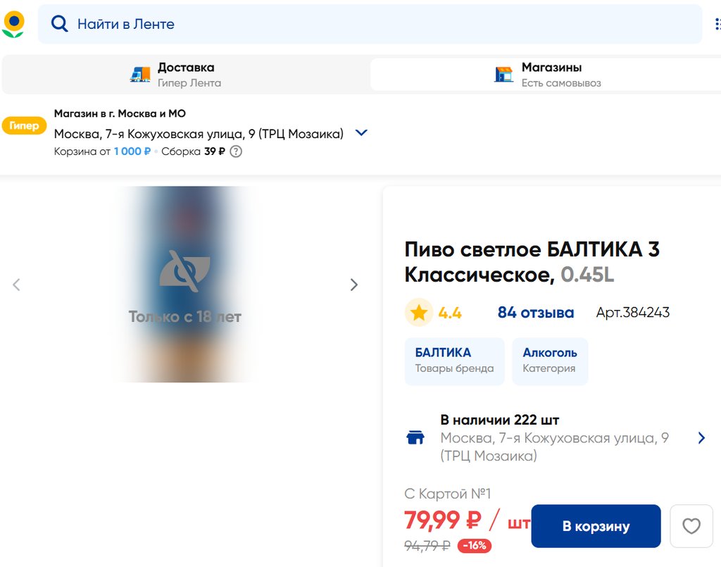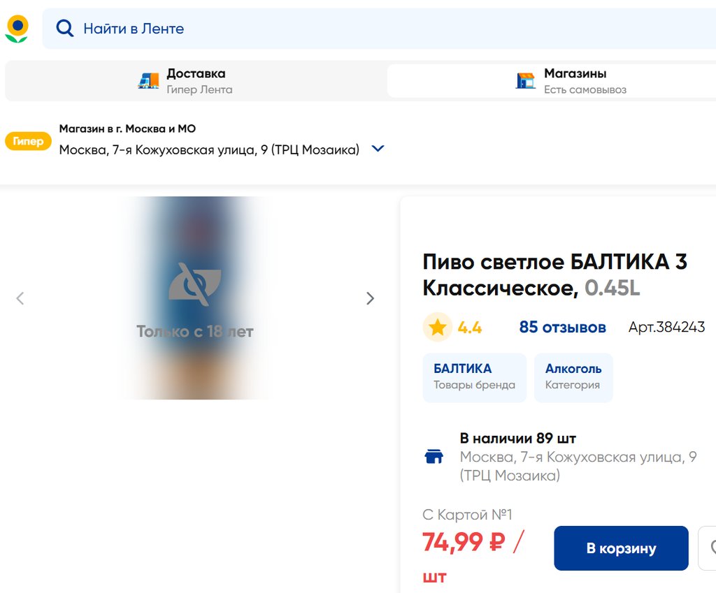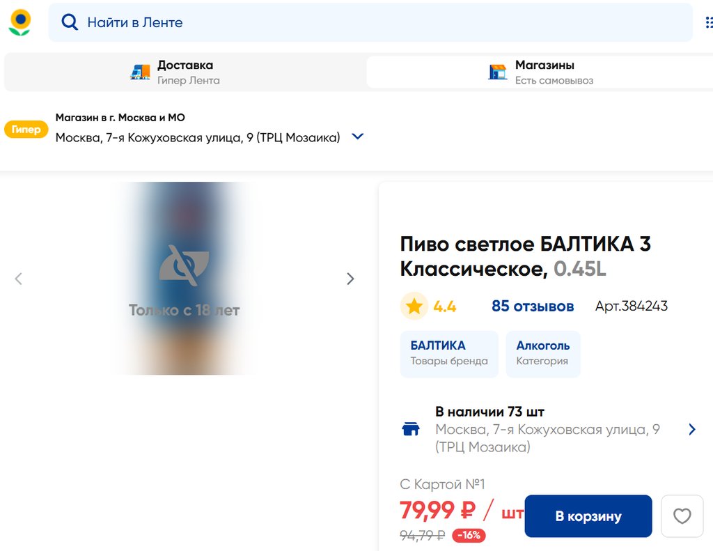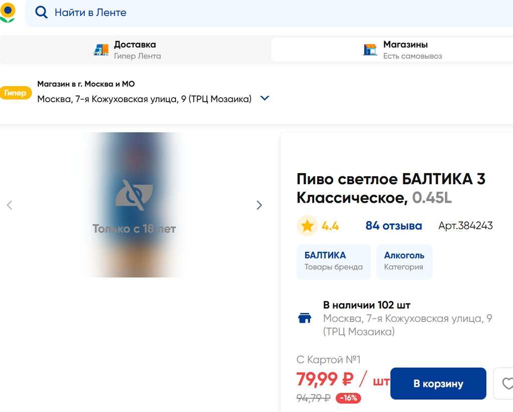 Пиво светлое БАЛТИКА 3 Классическое, 0.45