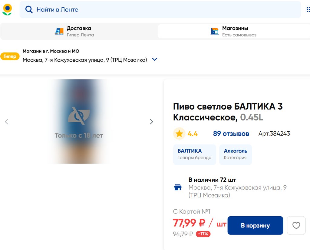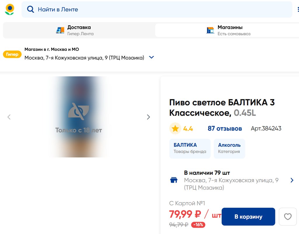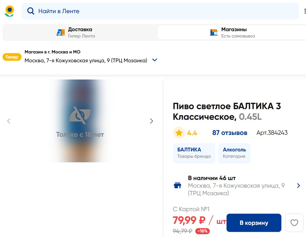 Магазин: Лента, Москва