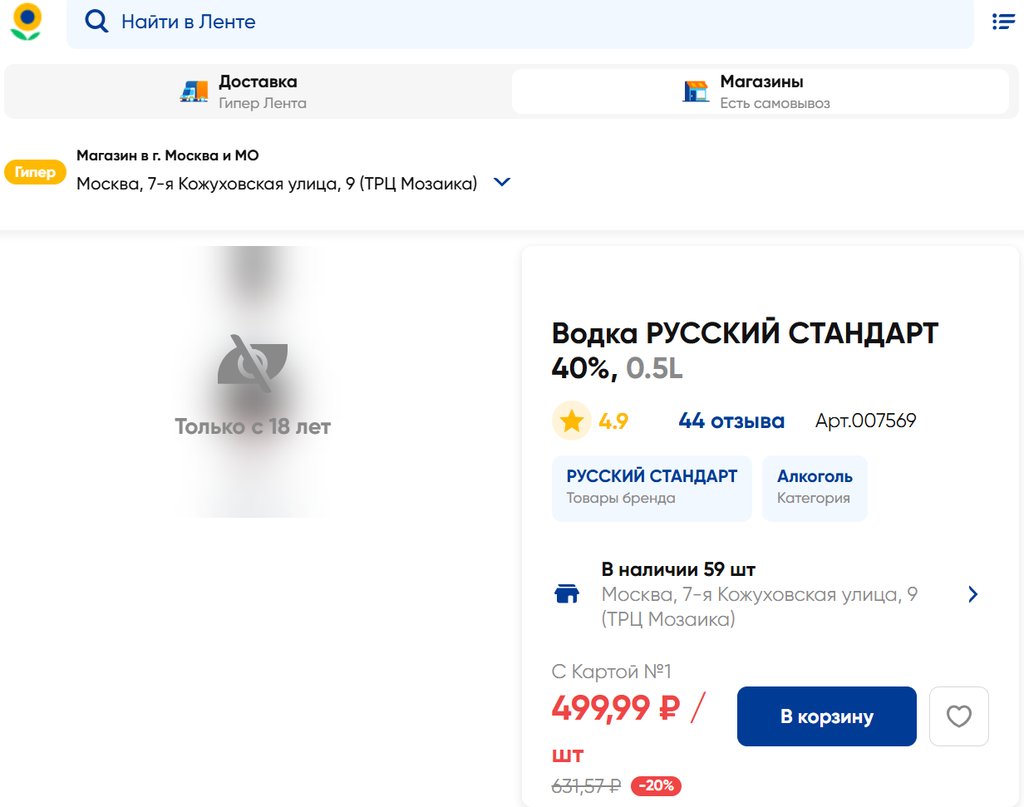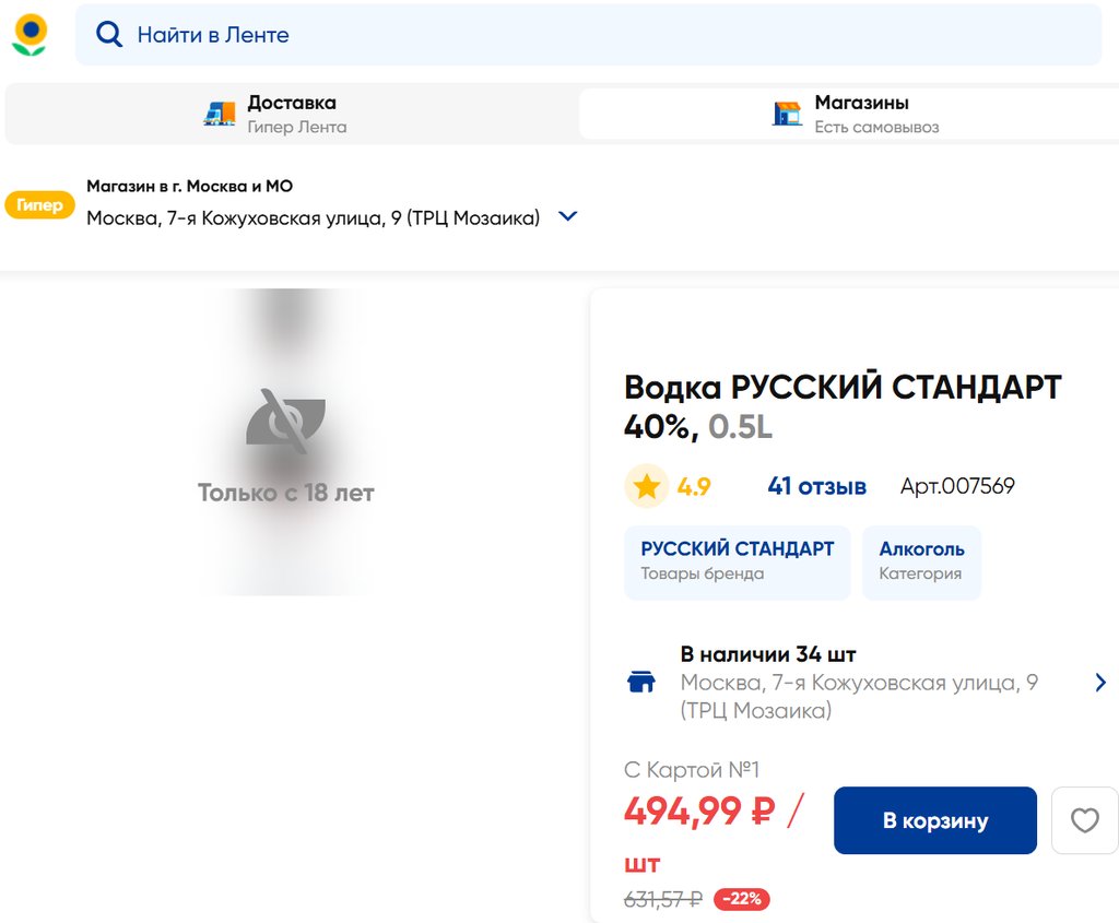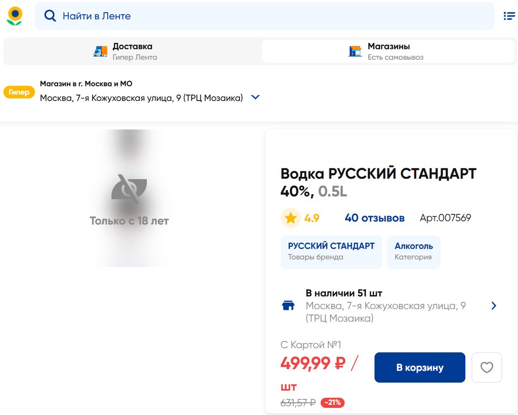 Водка РУССКИЙ СТАНДАРТ 40%, 0.5