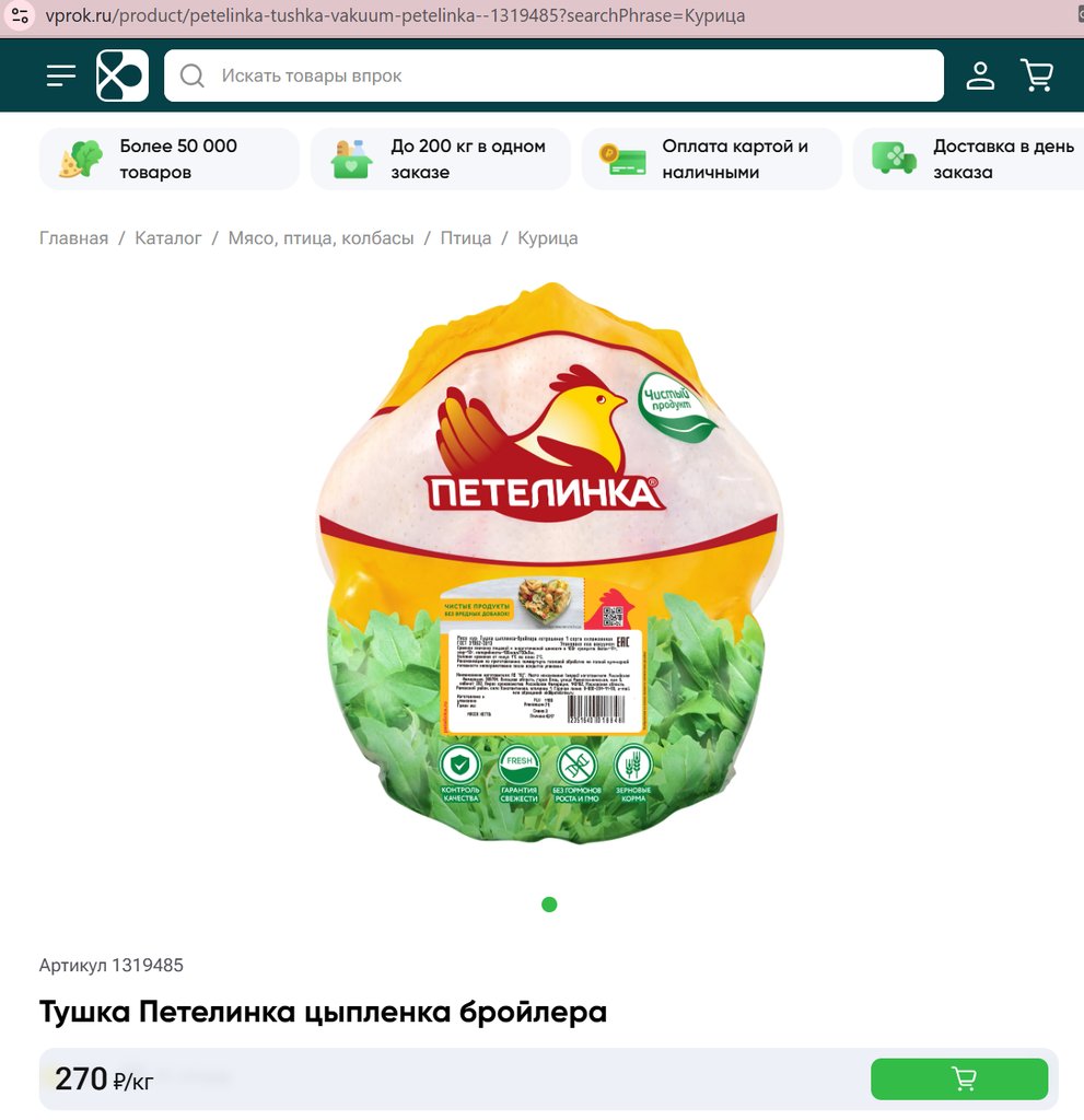 Тушка Петеленка цыпленка бройлера 1кг.