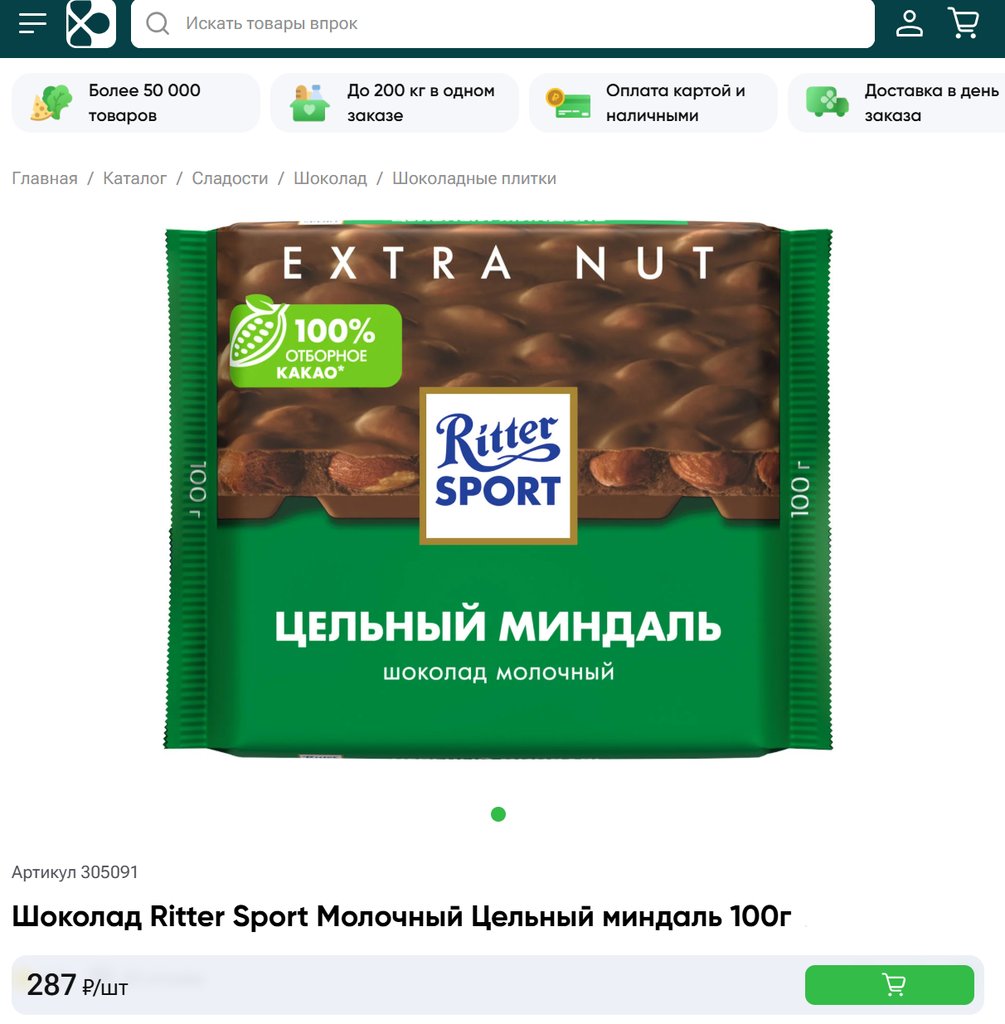 Шоколад Ritter Sport Молочный Цельный миндаль 100г