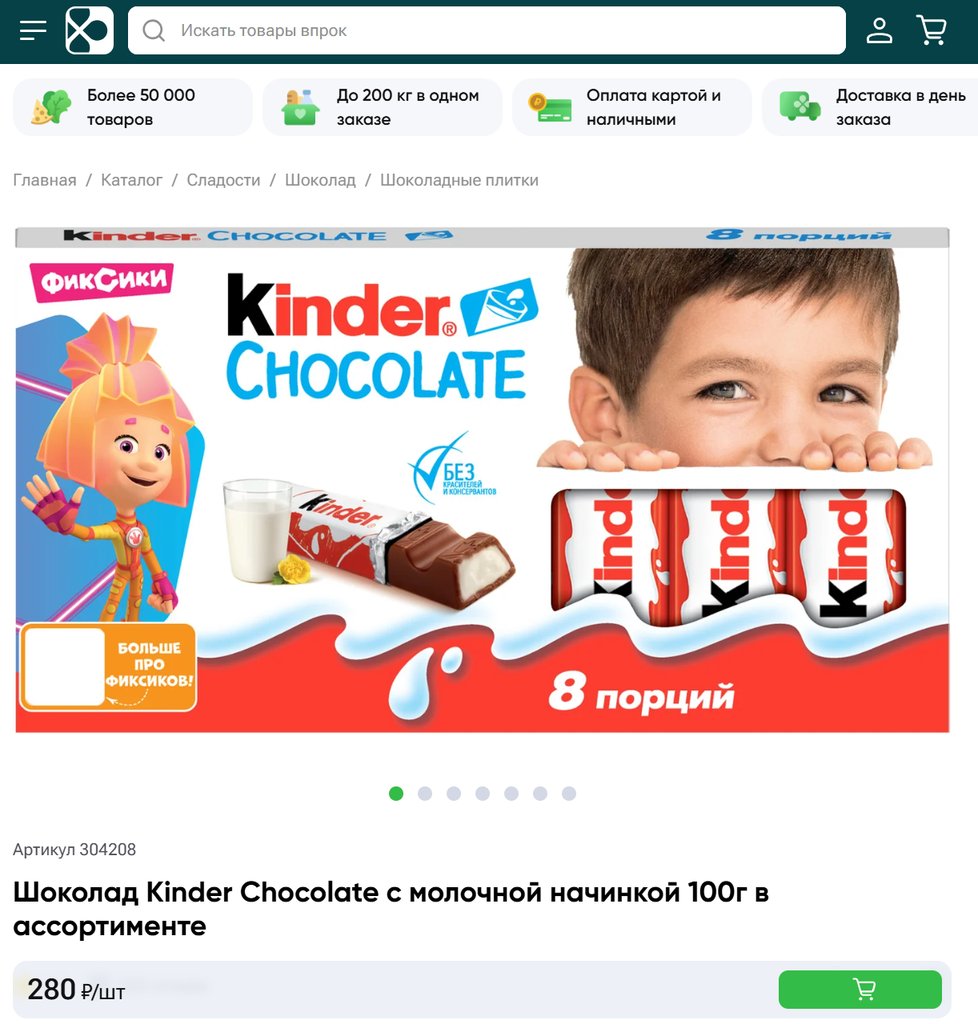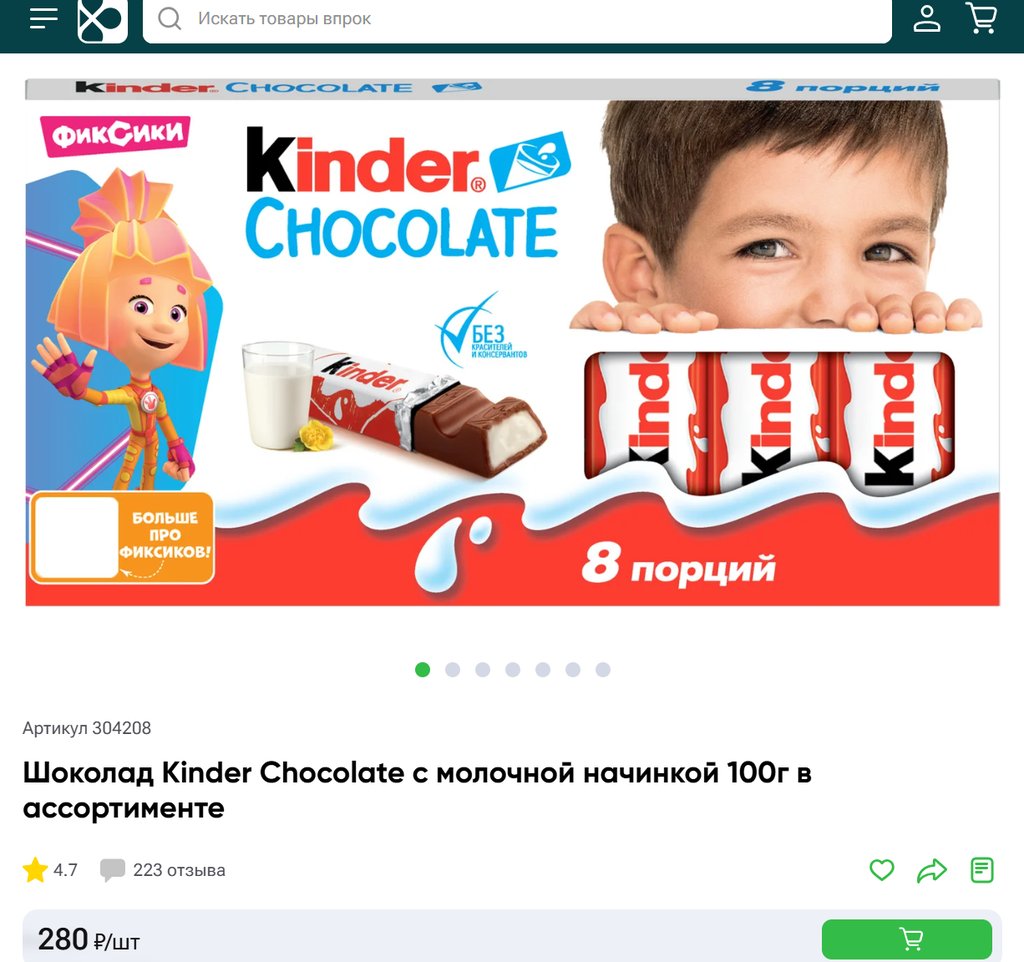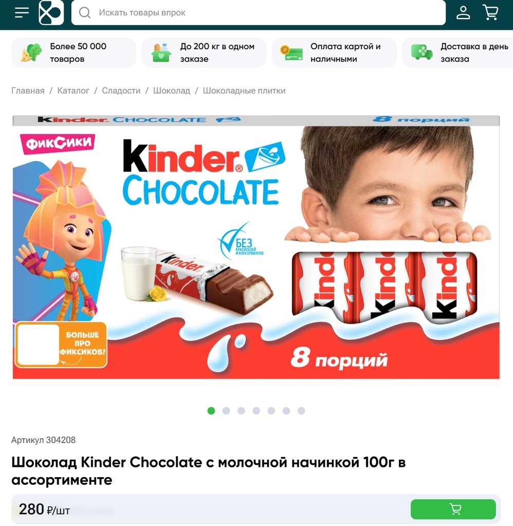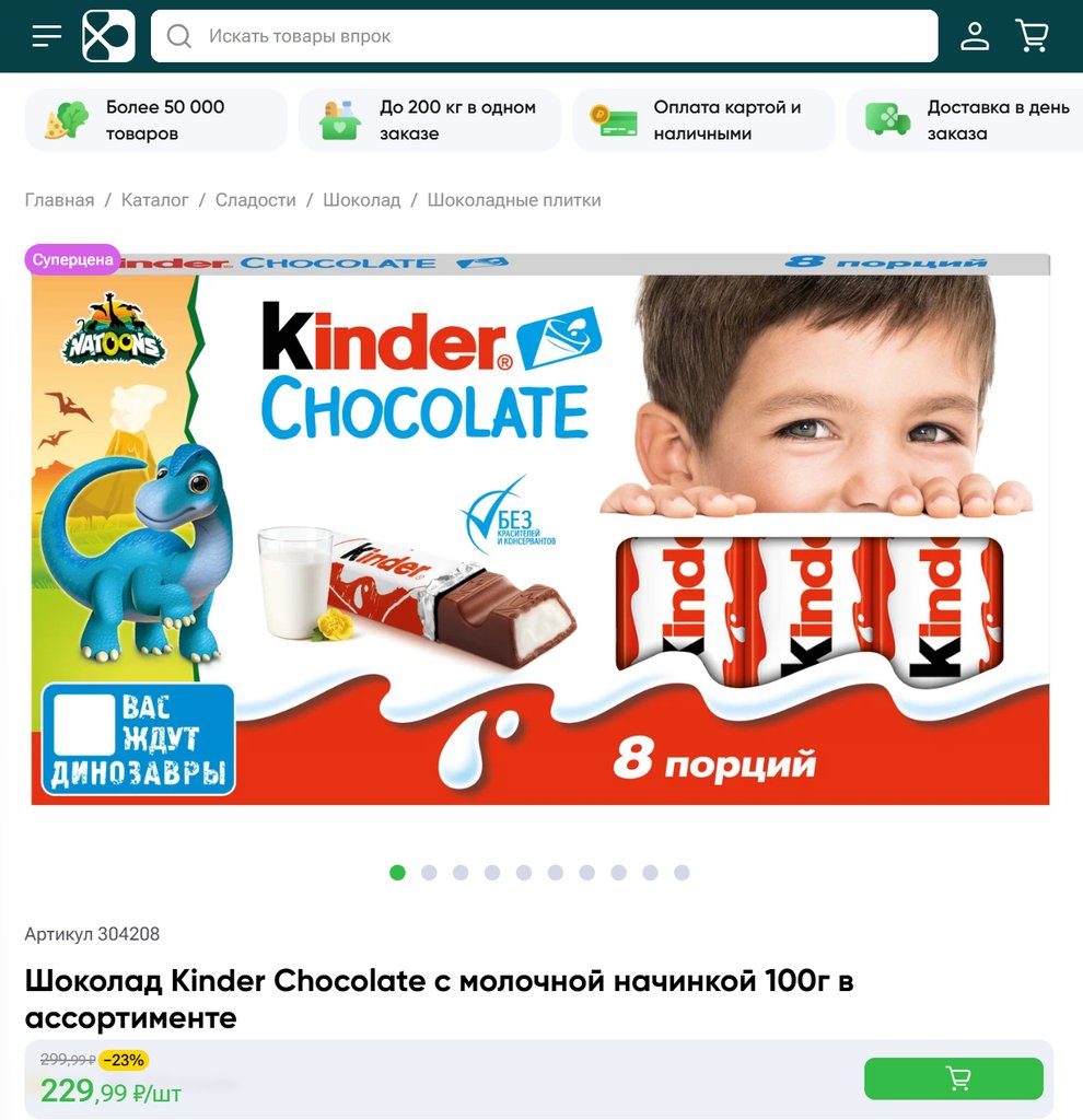 Шоколад Kinder Chocolate с молочной начинкой 100г