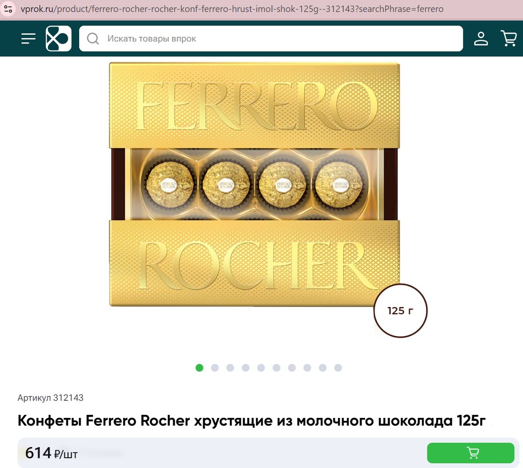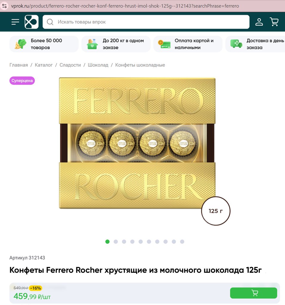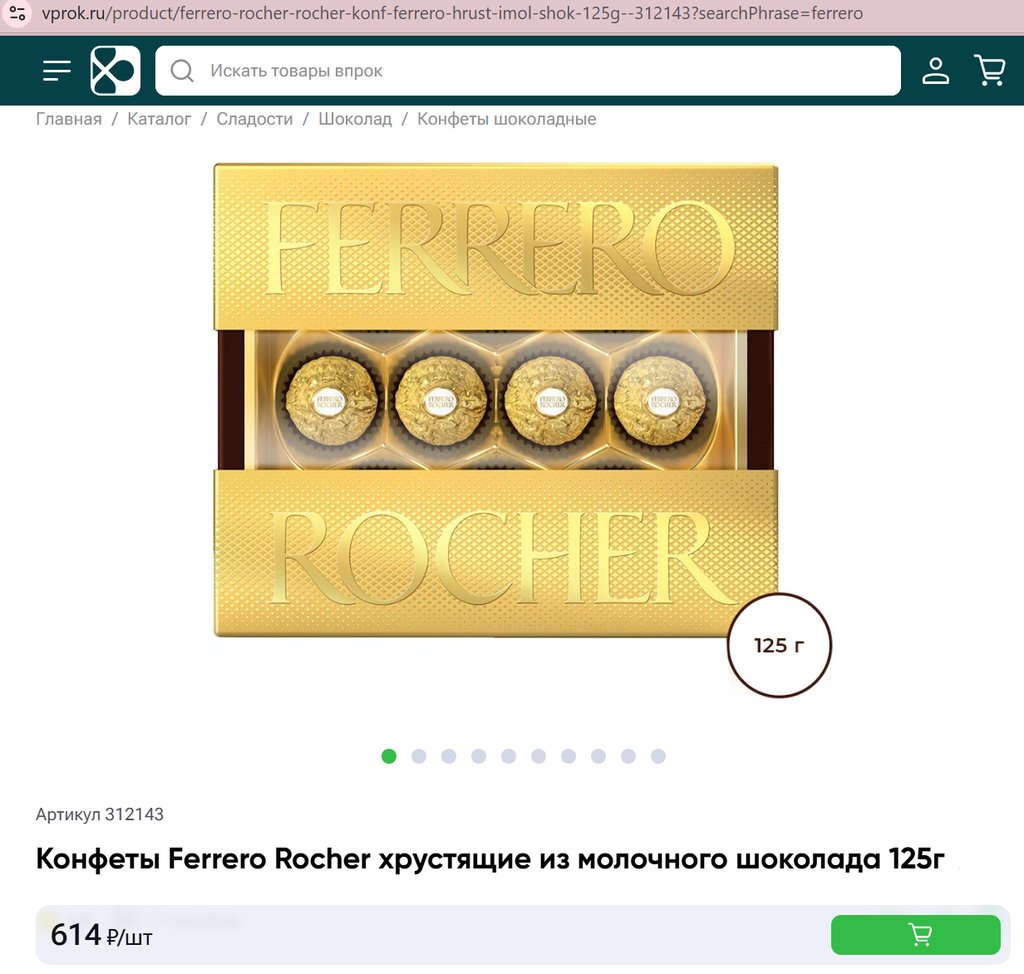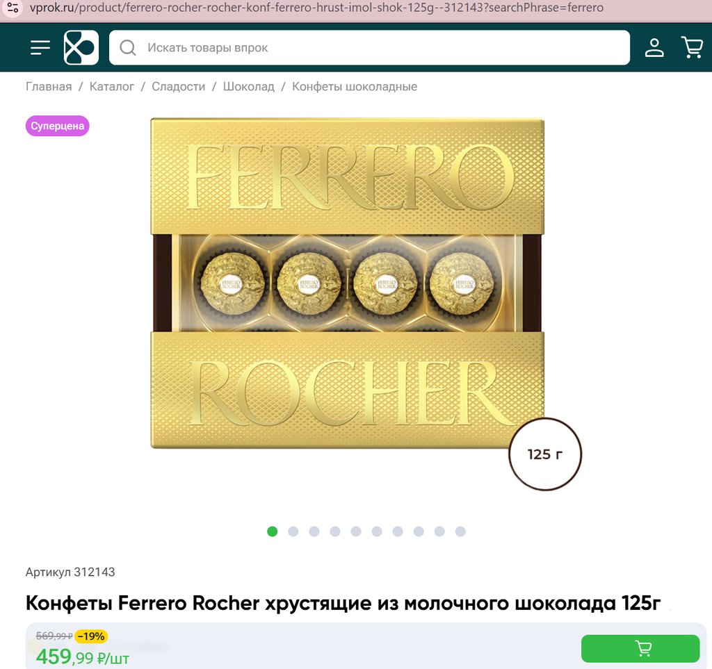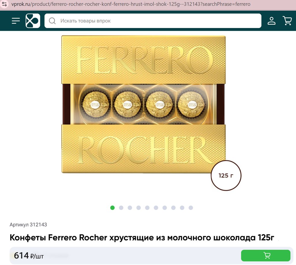 Конфеты Ferrero Rocher хрустящие из молочного шоколада 125г