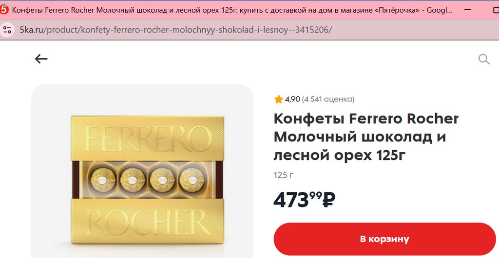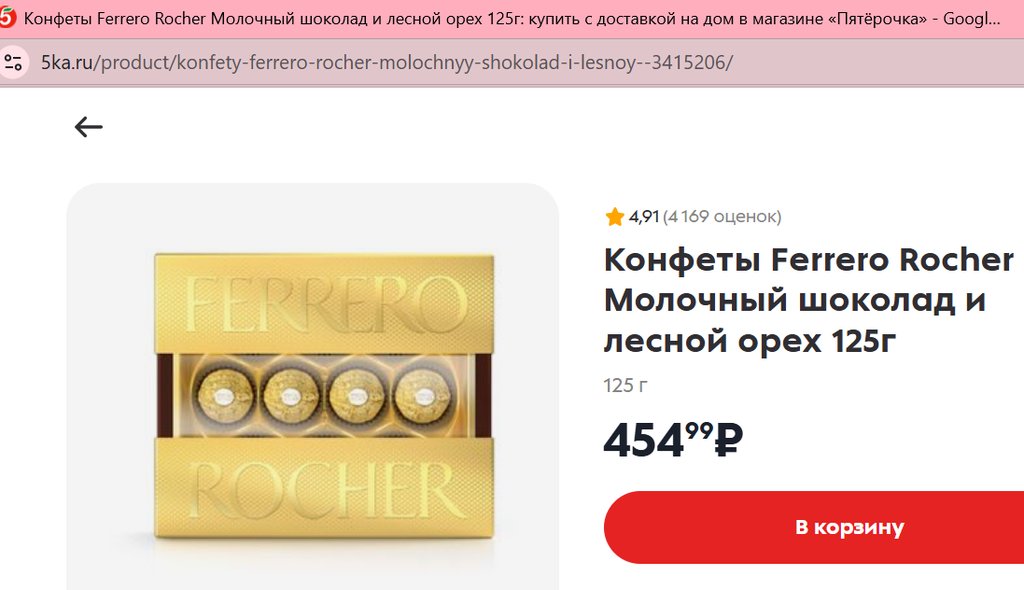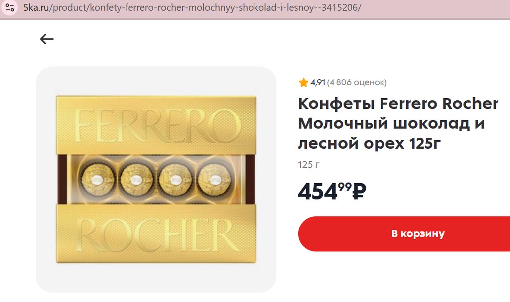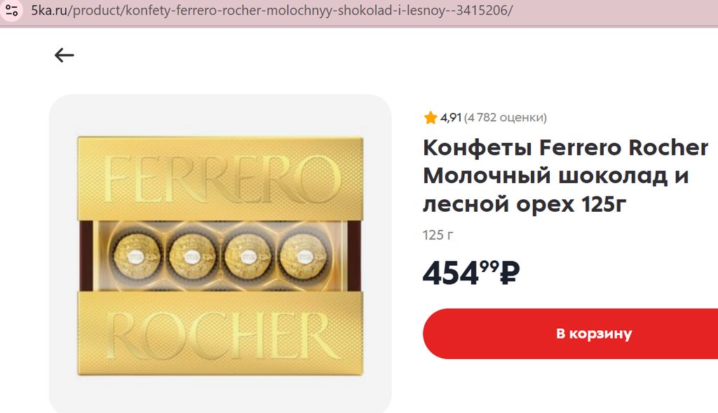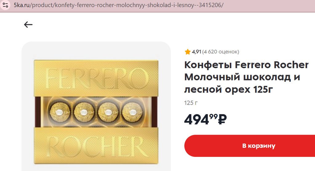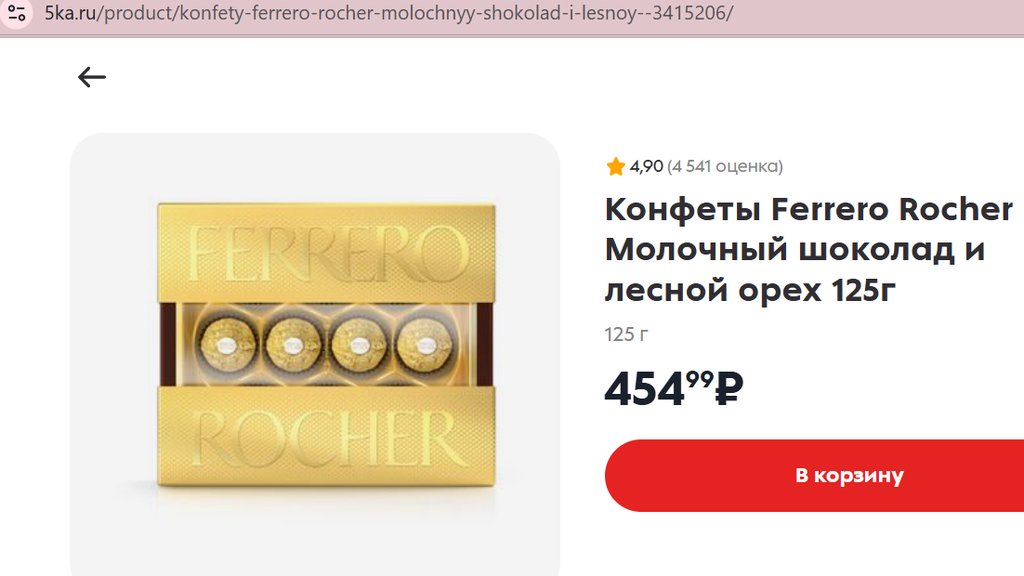 Конфеты Ferrero Rocher хрустящие из молочного шоколада 125г