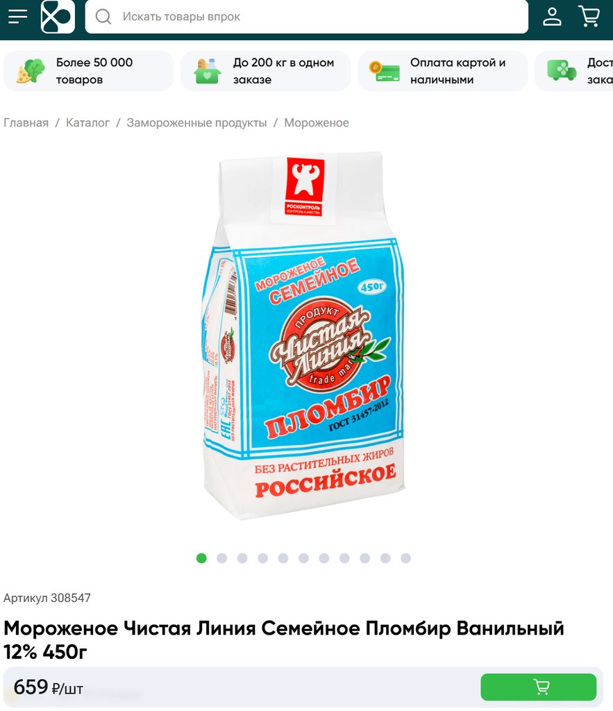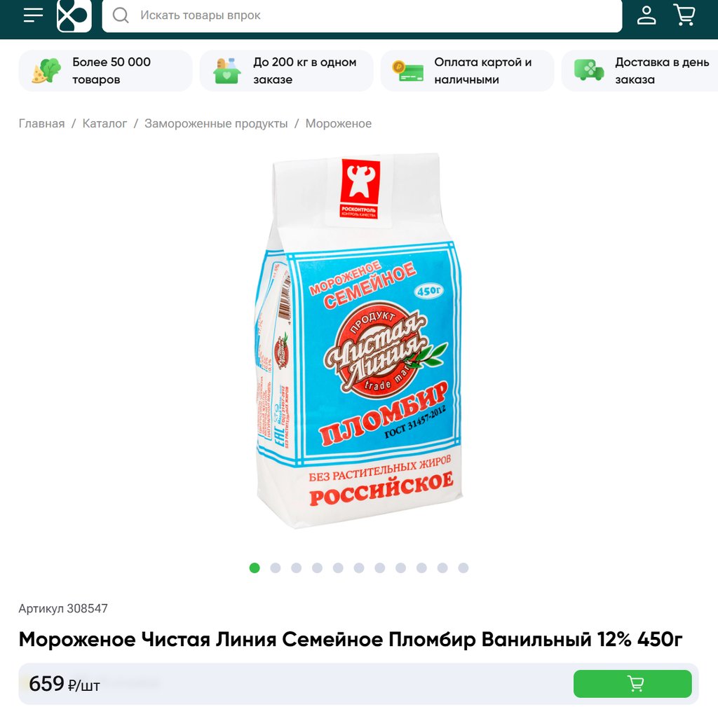 Мороженое Чистая Линия Семейное Пломбир Ванильный 12% 450г