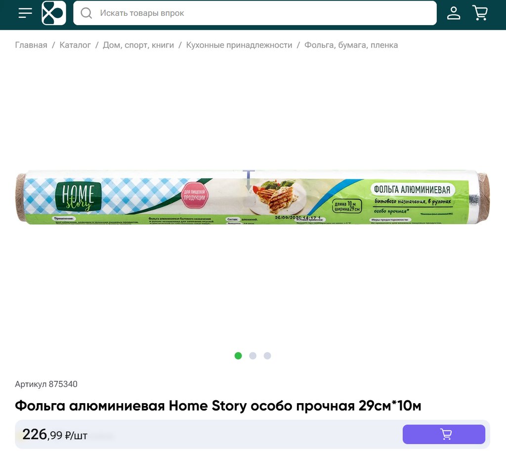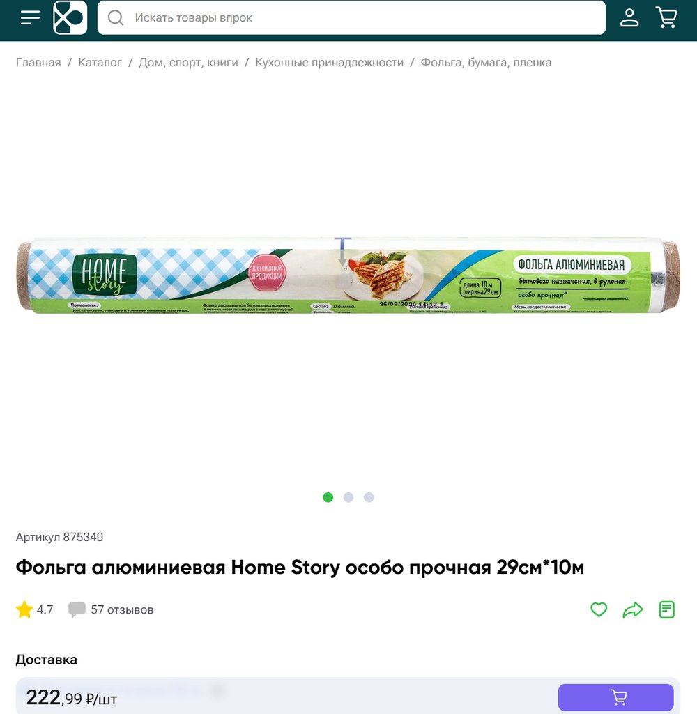 Фольга алюминиевая Home Story особо прочная 29см 10м