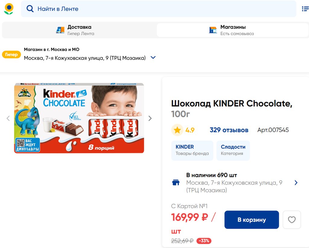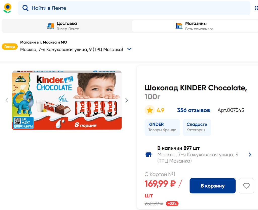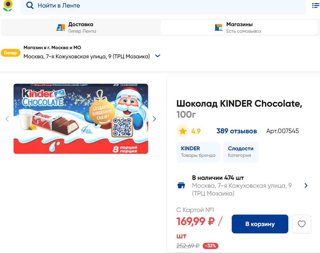 Шоколад Kinder Chocolate с молочной начинкой 100г