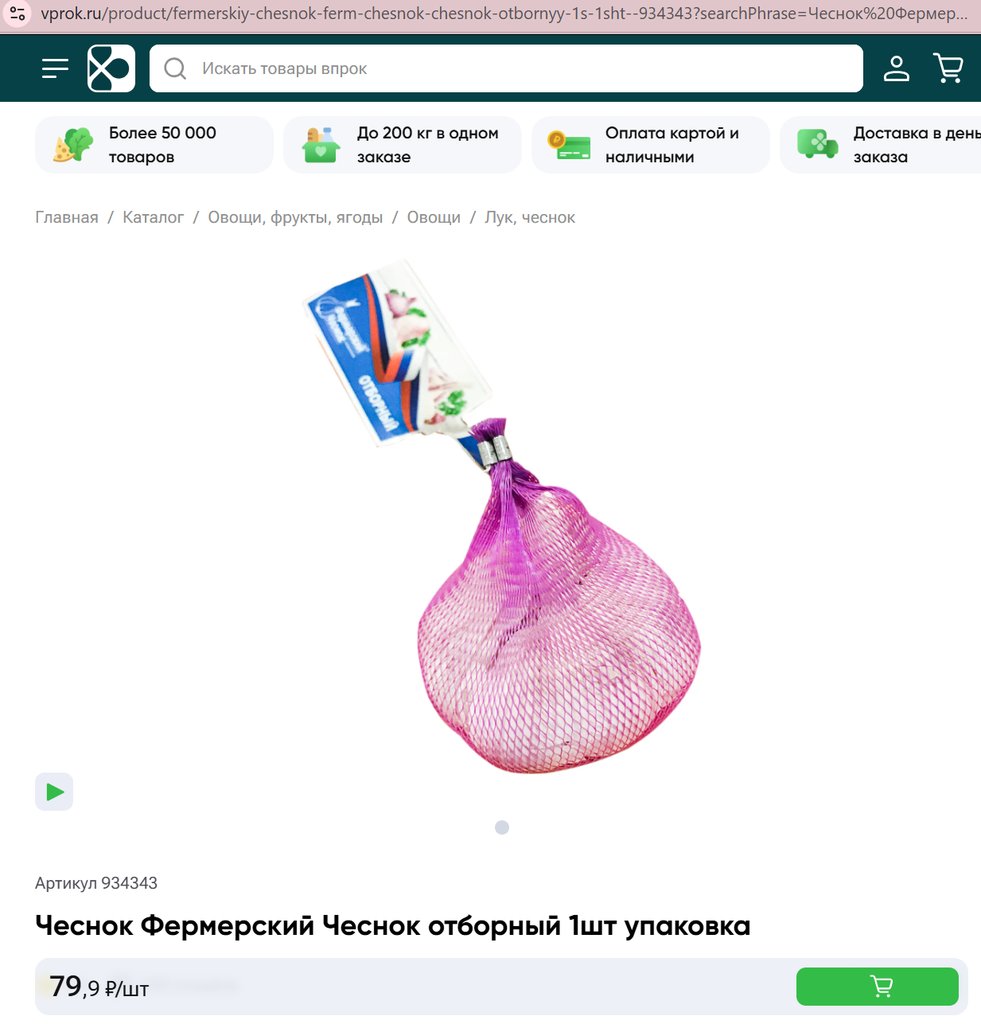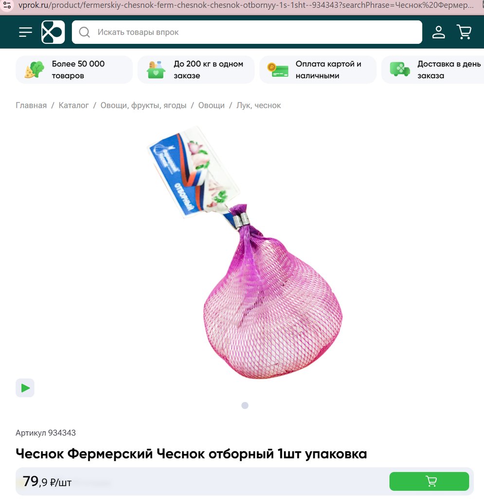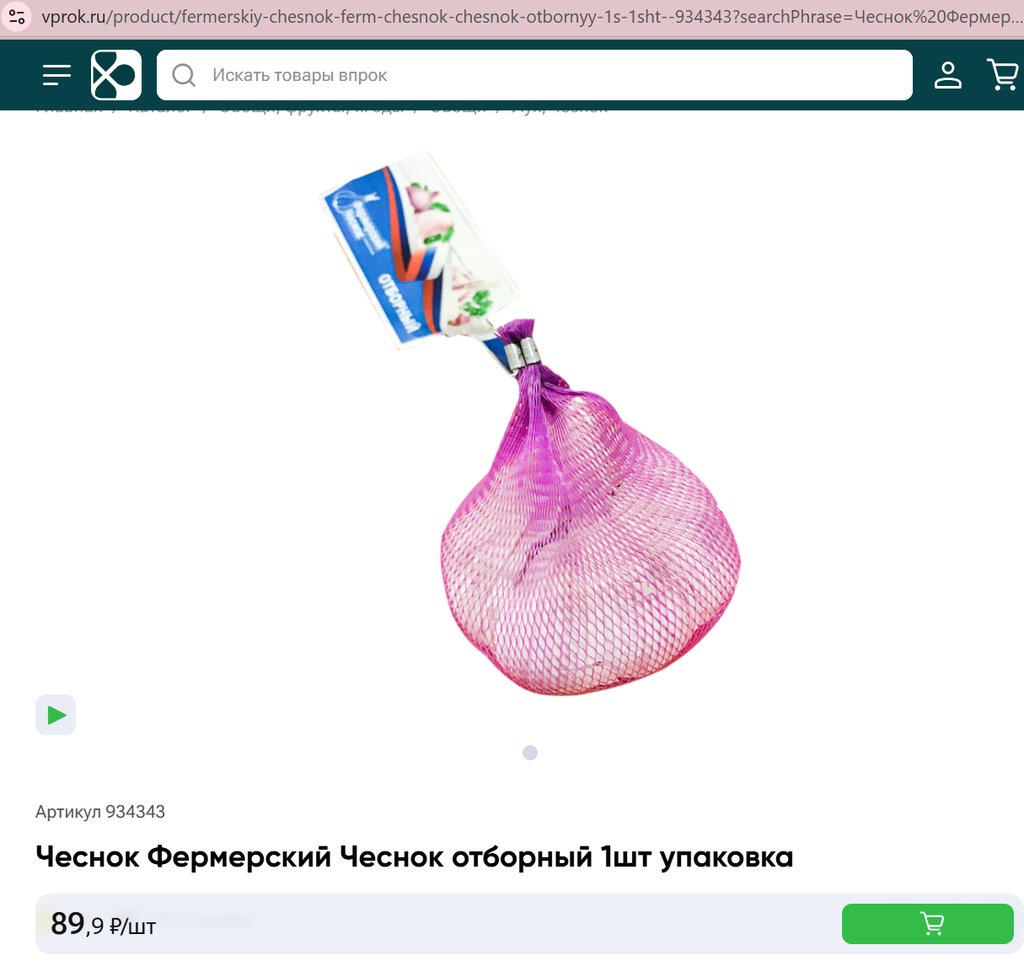 Чеснок Фермерский Чеснок отборный 1шт упаковка