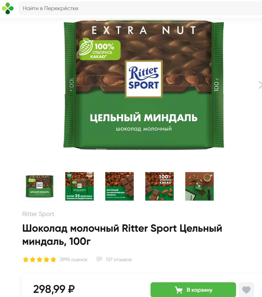 Шоколад Ritter Sport Молочный Цельный миндаль 100г