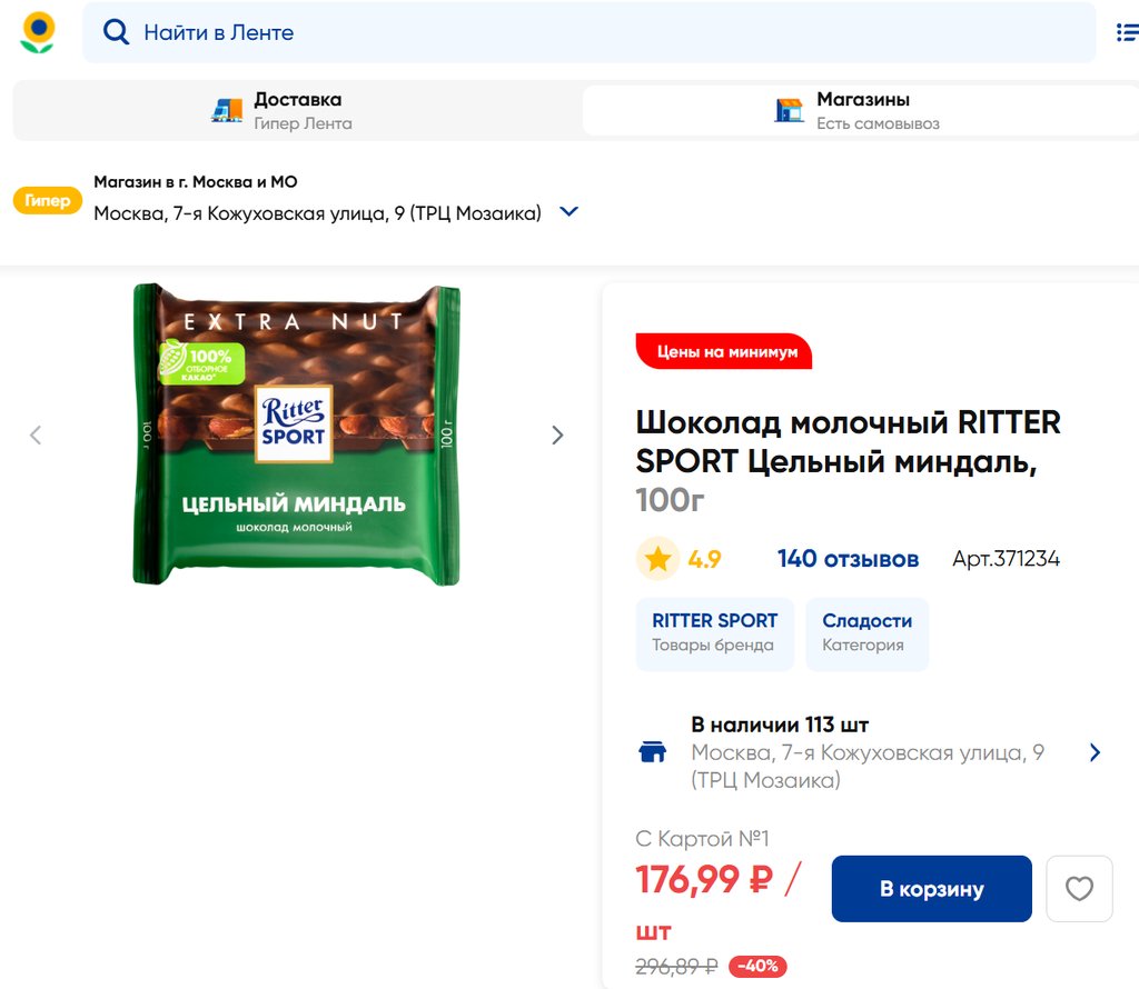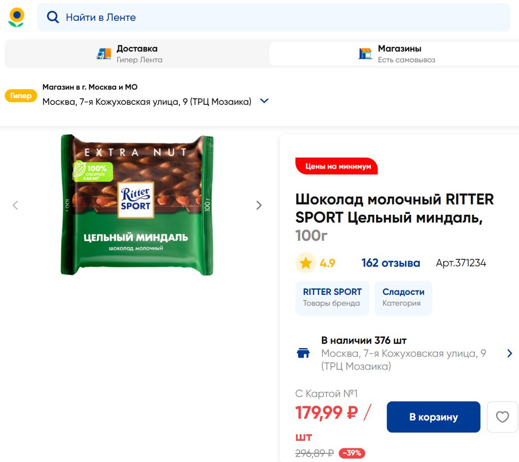 Шоколад Ritter Sport Молочный Цельный миндаль 100г