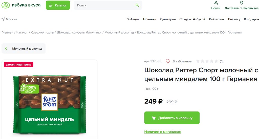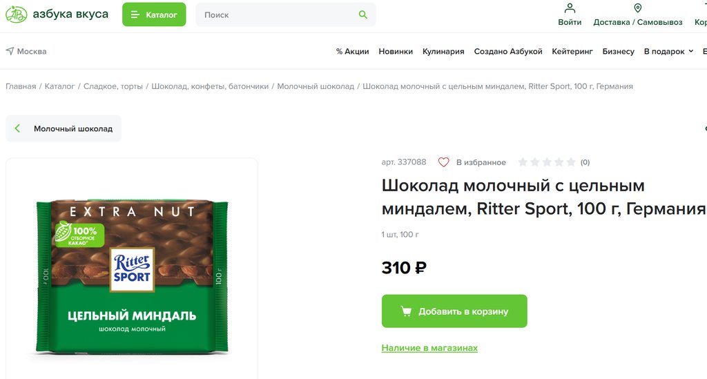 Шоколад Ritter Sport Молочный Цельный миндаль 100г