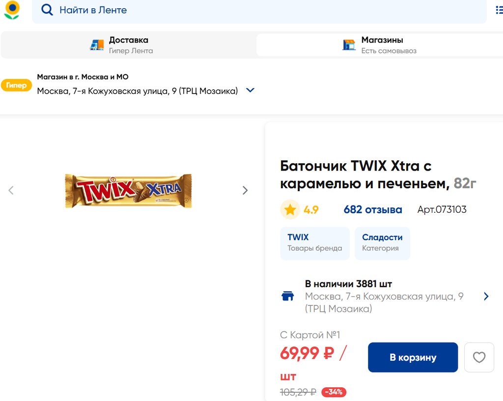 Шоколадный батончик Twix Xtra с карамелью и шоколадом 2шт*41г