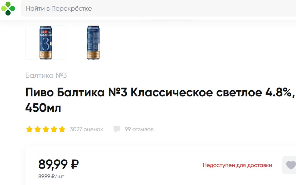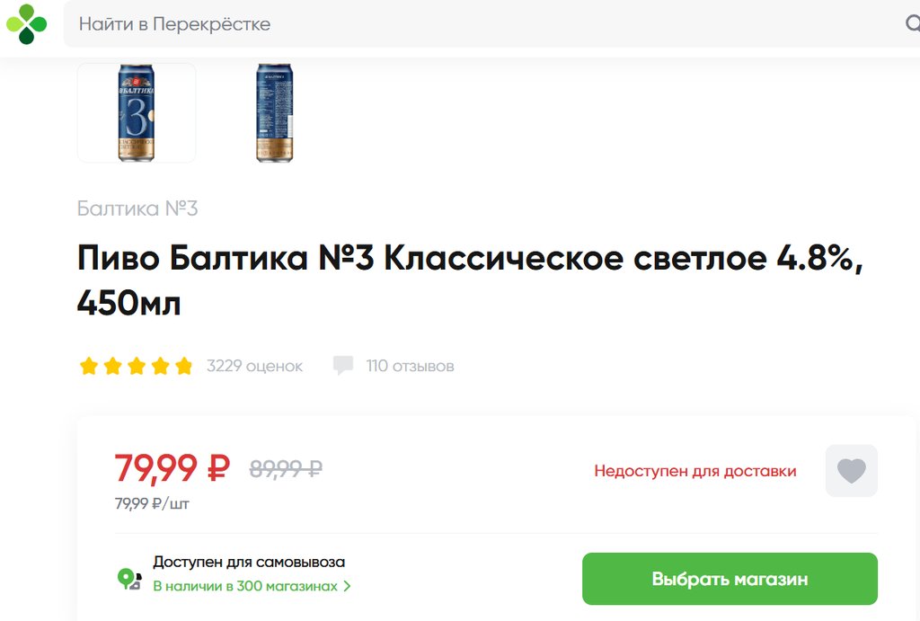 Пиво светлое БАЛТИКА 3 Классическое, 0.45