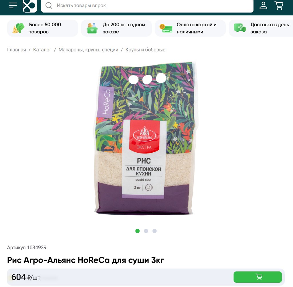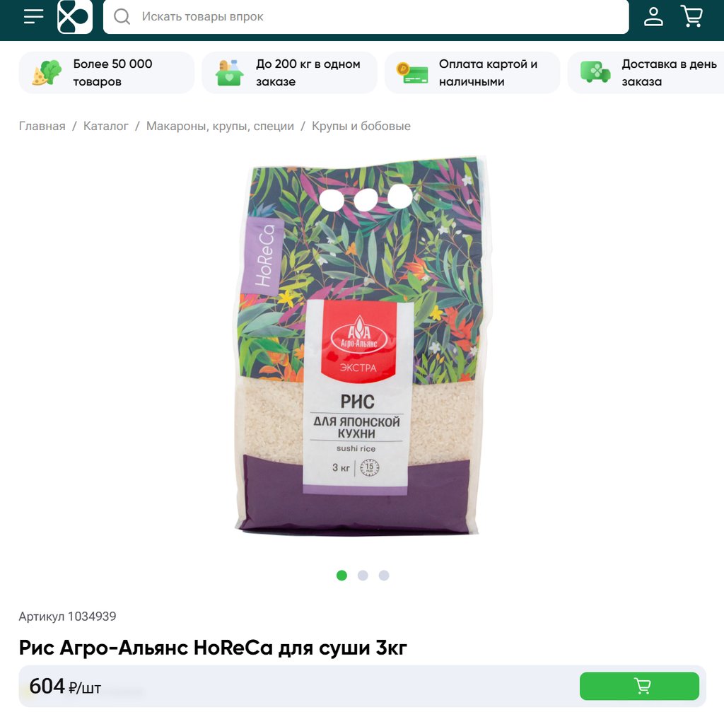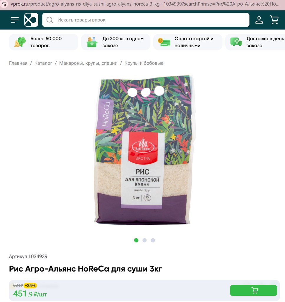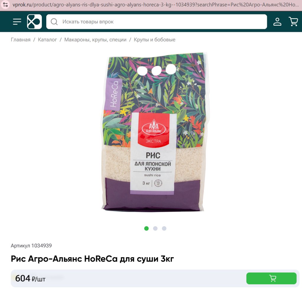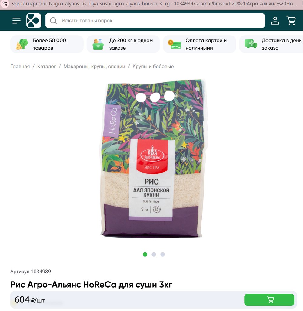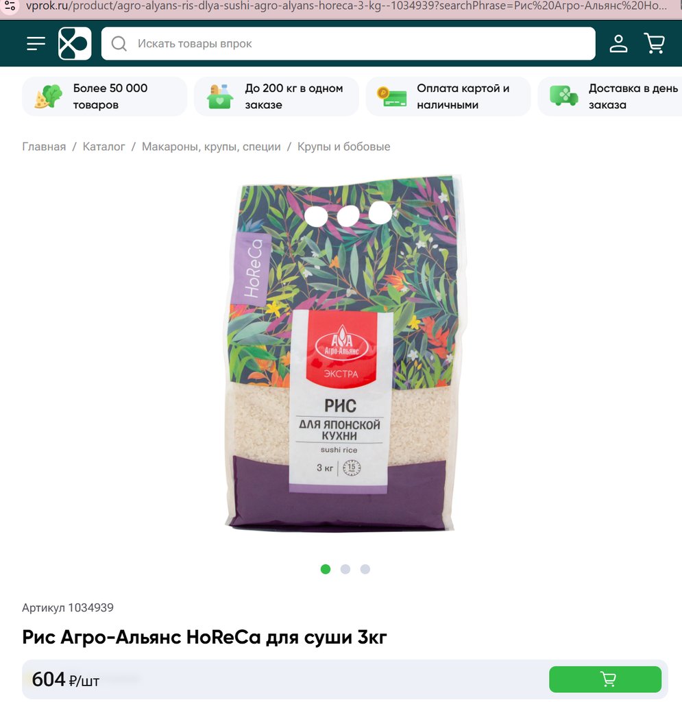 Рис Агро-Альянс HoReCa для суши 3кг