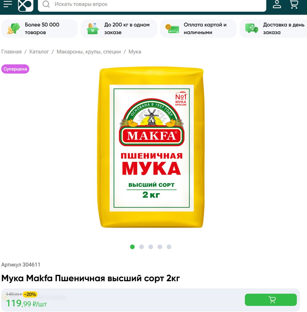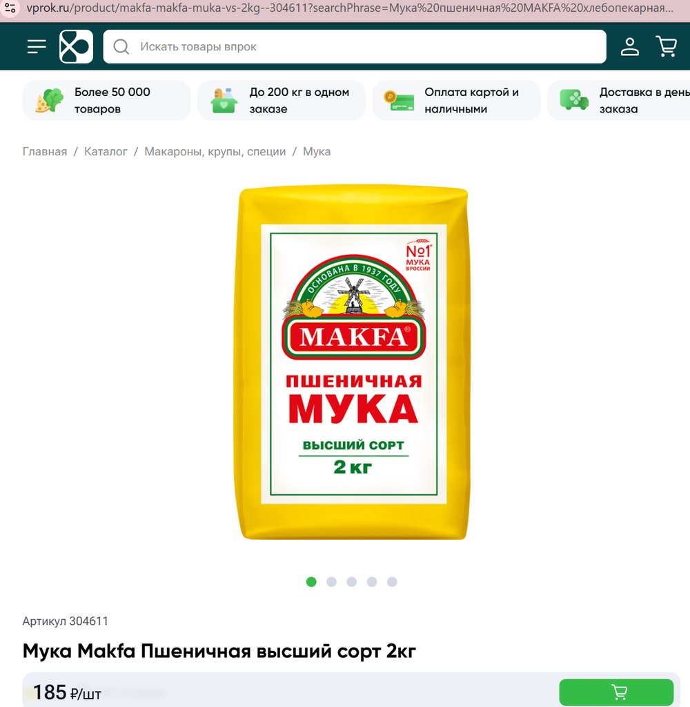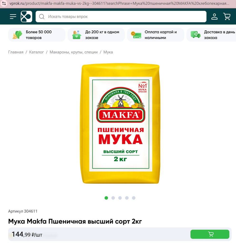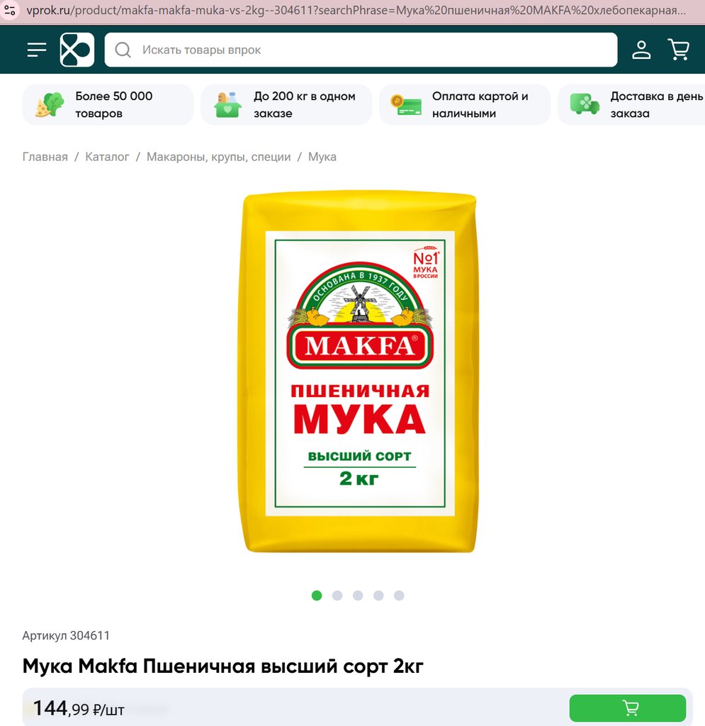 Мука пшеничная MAKFA хлебопекарная высший сорт, 2кг