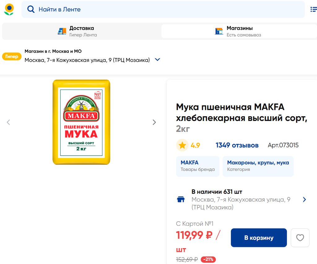 Мука пшеничная MAKFA хлебопекарная высший сорт, 2кг