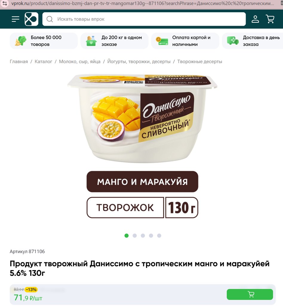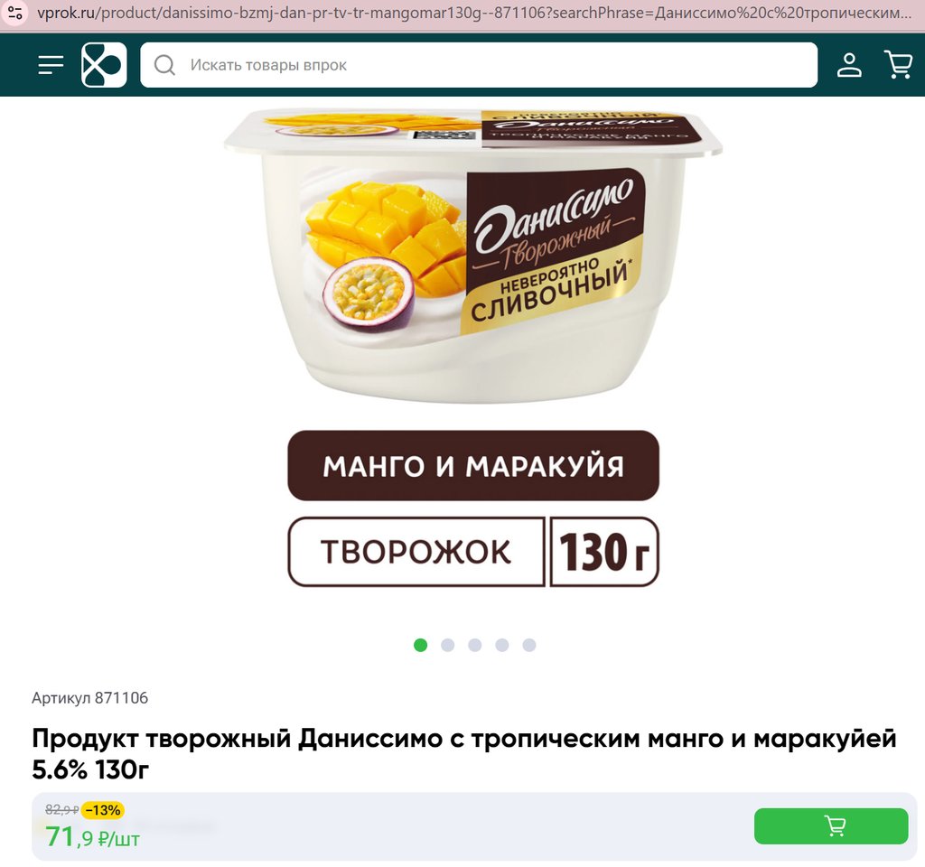 Даниссимо с тропическим манго и маракуйей 5.6% 130г