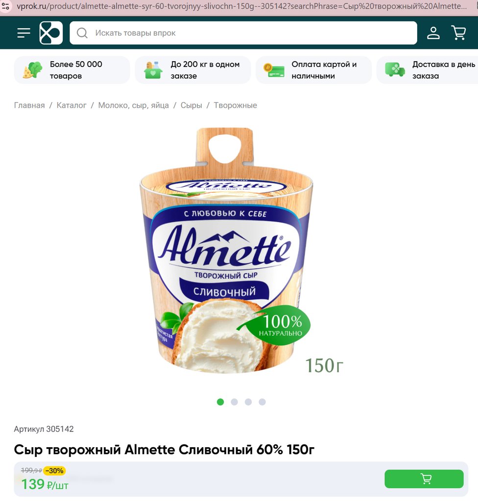 Сыр творожный Almette Сливочный 60% 150г