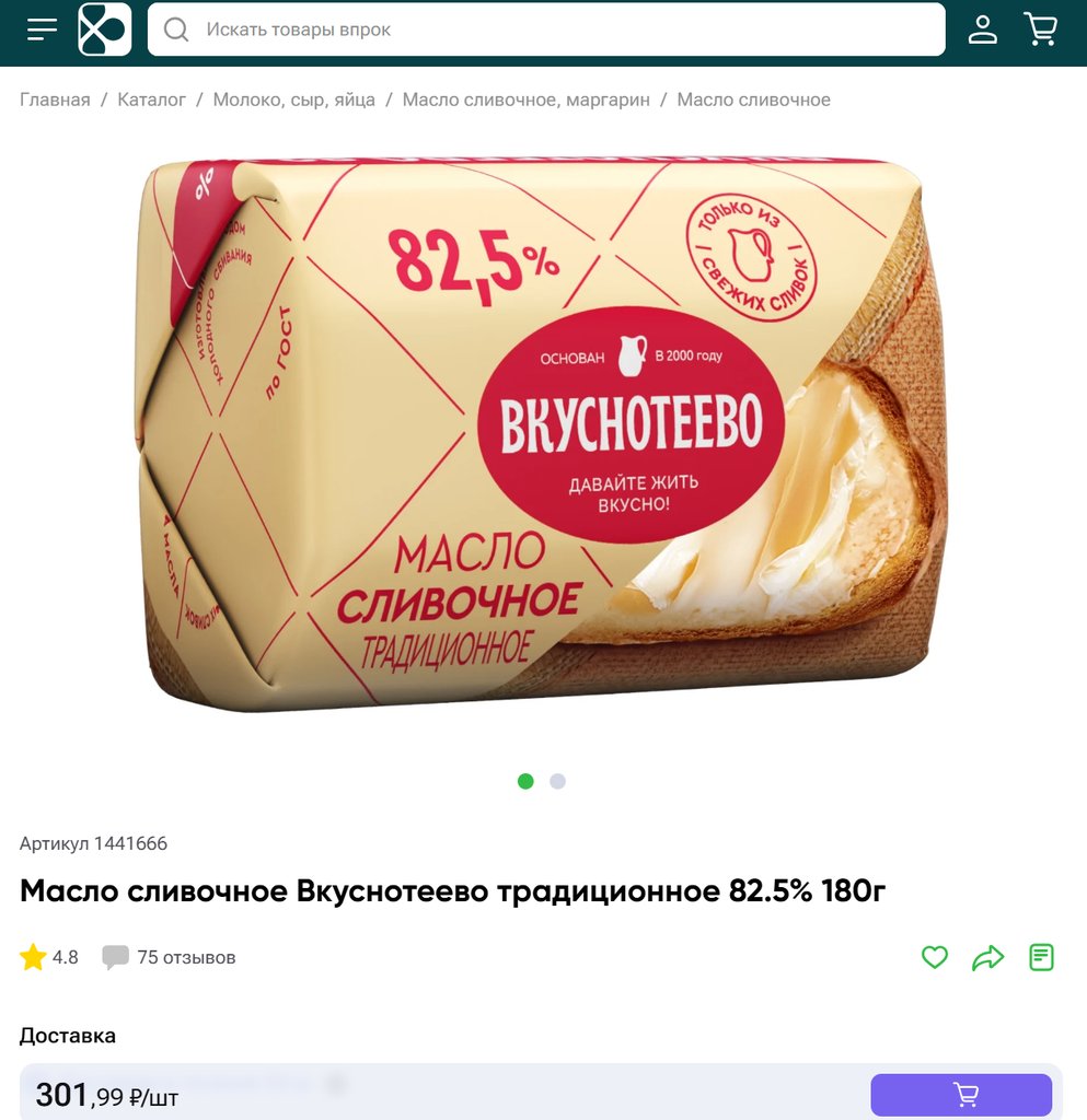 Масло сливочное Вкуснотеево Традиционное 82.5%, 200г (180г с Декабря 2025)