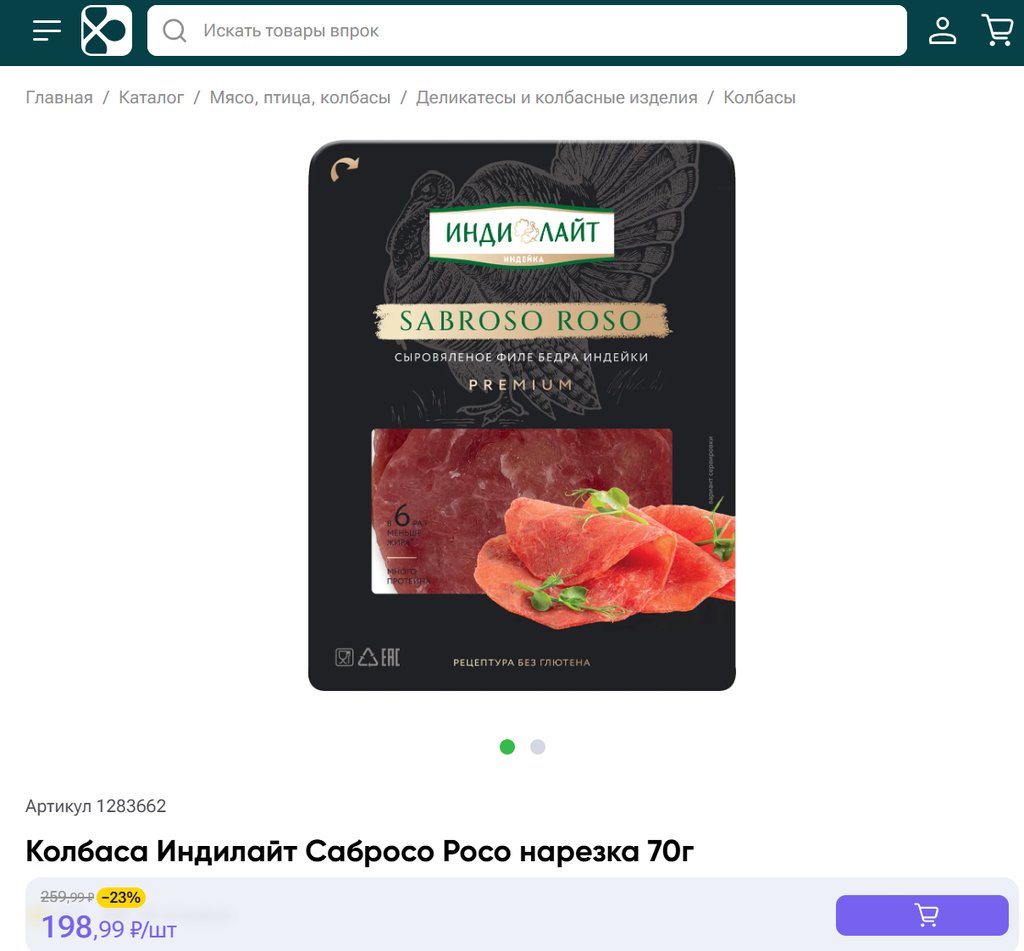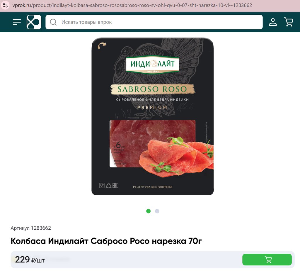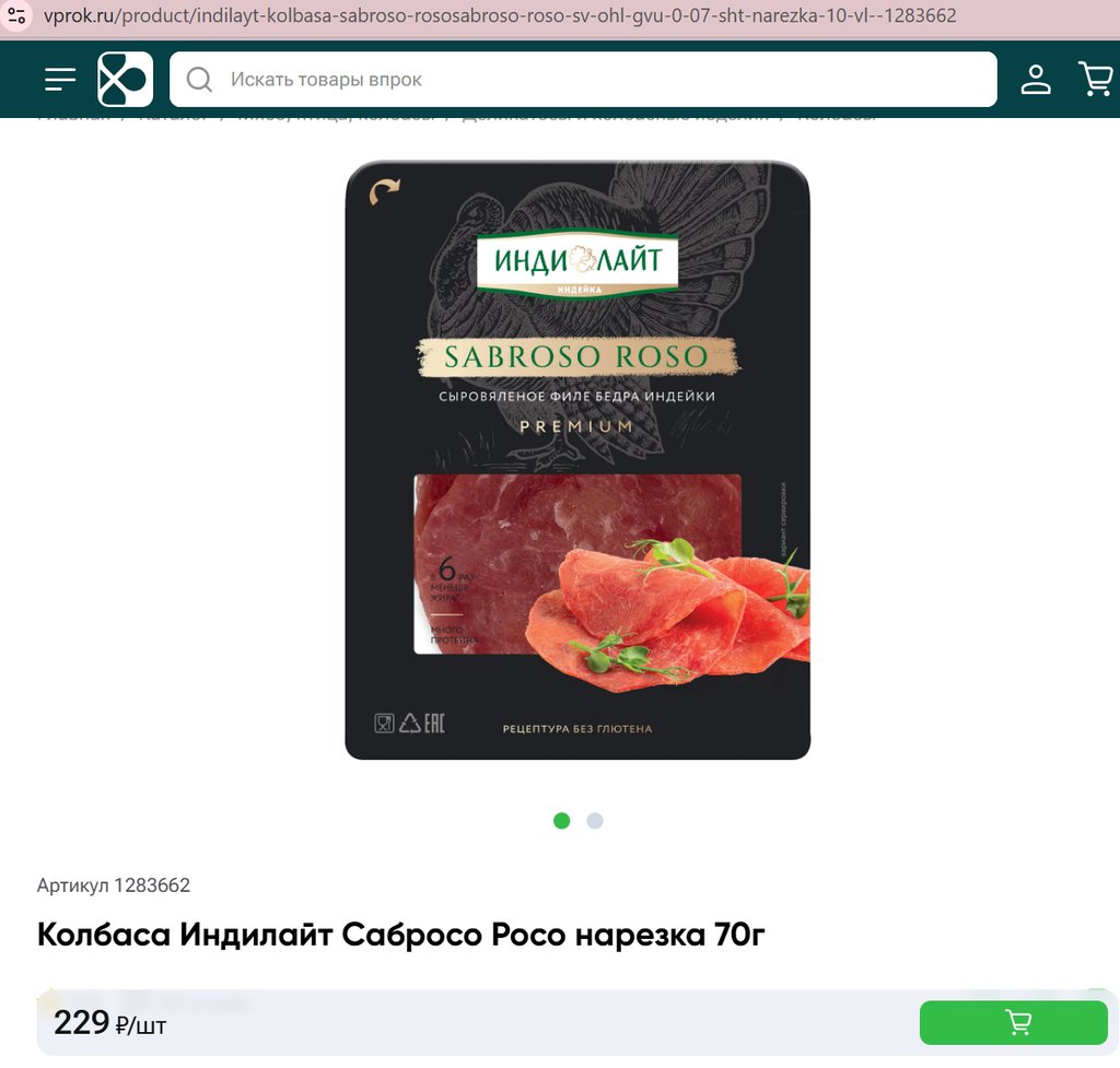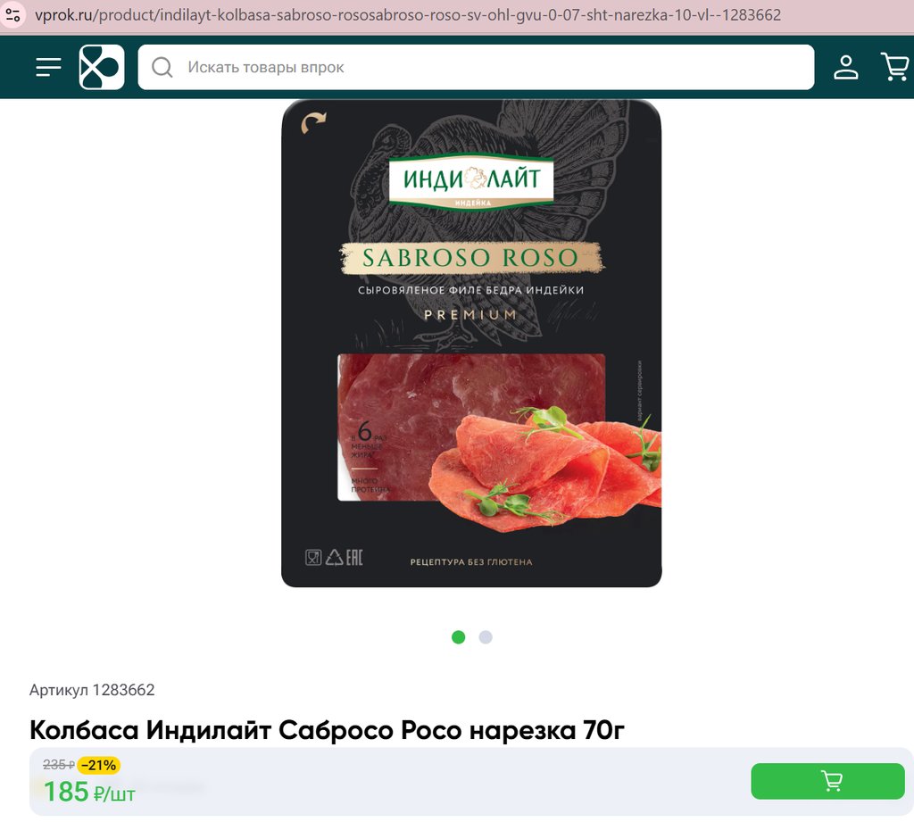 Колбаса Индилайт Сабросо Росо нарезка 70г