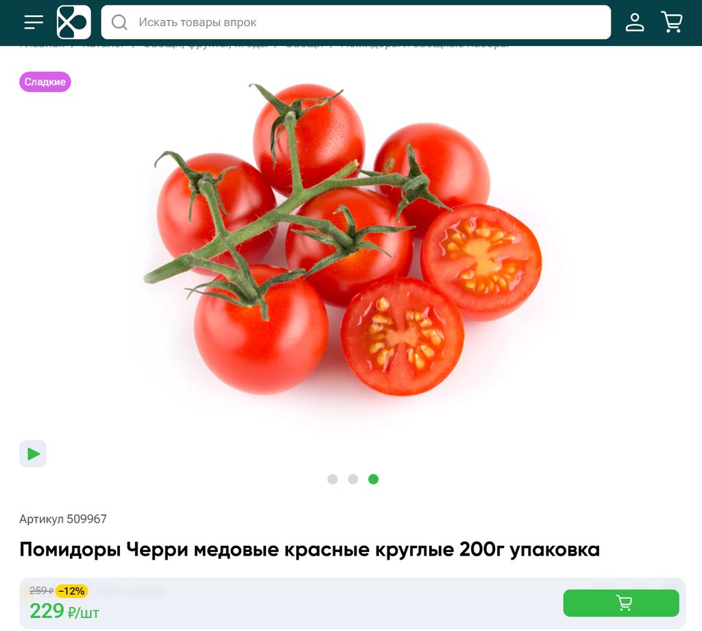 Помидоры Черри Медовые красные круглые на ветке 200г