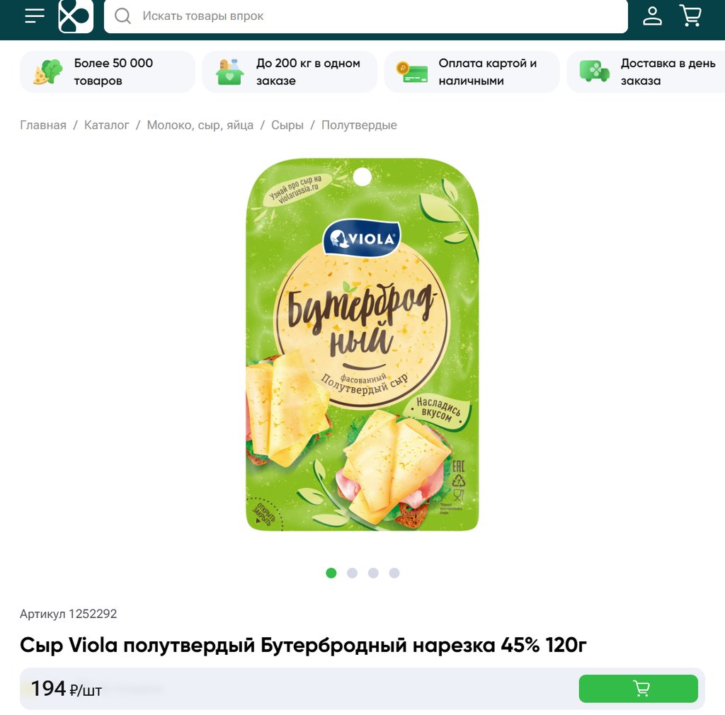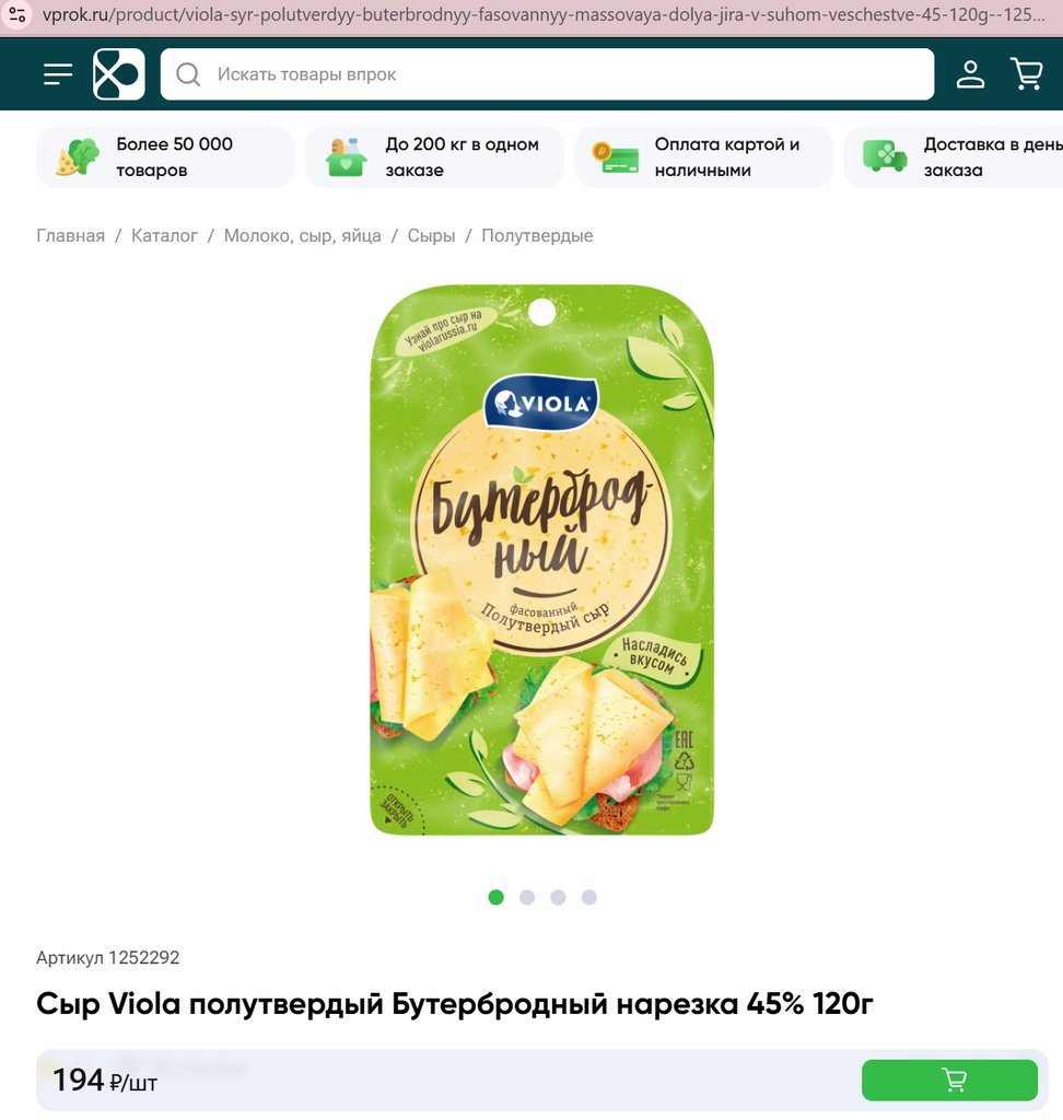 Сыр Viola полутвердый Бутербродный нарезка 45% 120г